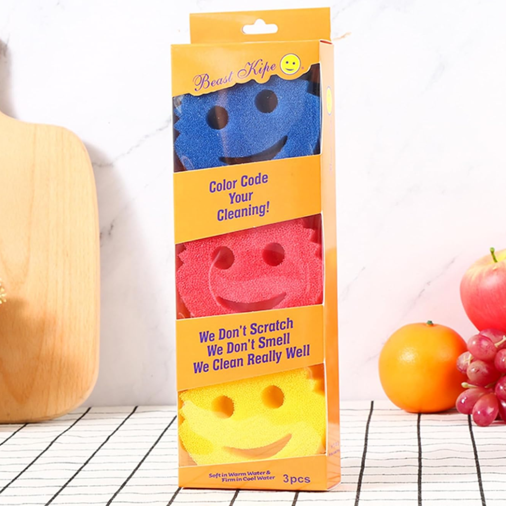MAGICZNE GĄBKI SCRUB 3PACK BEAST KIPE DO CZYSZCZENIA ZMYWAK RÓŻOWY ŻÓŁTY