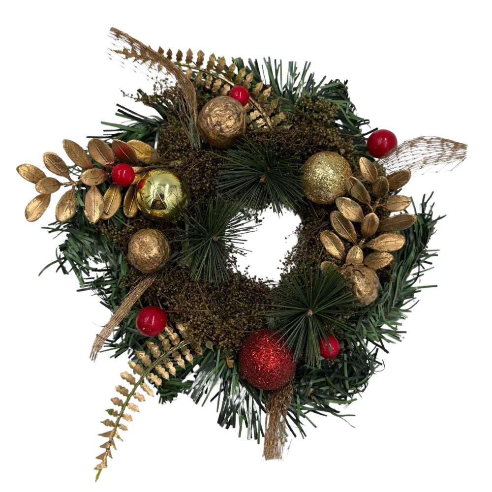 MAŁY WIENIEC ŚWIĄTECZNY ZŁOTO-CZERWONY ŚREDNICA OK. 21 CM