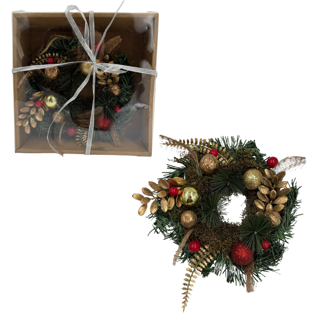 MAŁY WIENIEC ŚWIĄTECZNY ZŁOTO-CZERWONY OZDOBA NA DRZWI I STÓŁ