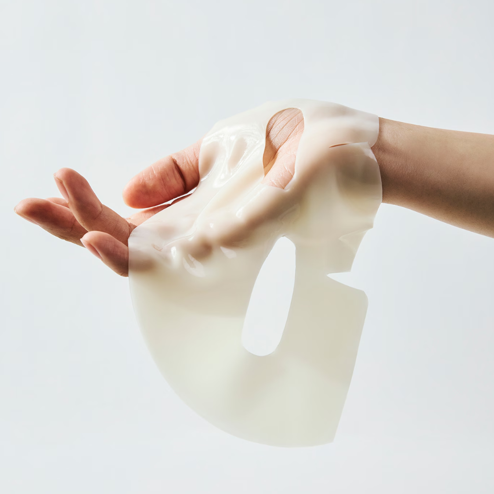 Receptura kosmetyku wzbogacona została także o glutation, który niweluje szkodliwe działanie wolnych rodników i wzmacnia rozjaśniające działanie produktu. Po wchłonięciu się w skórę aktywnej esencji maseczka staje się transparentna.