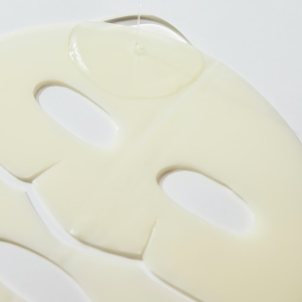 Receptura kosmetyku wzbogacona została także o glutation, który niweluje szkodliwe działanie wolnych rodników i wzmacnia rozjaśniające działanie produktu. Po wchłonięciu się w skórę aktywnej esencji maseczka staje się transparentna.