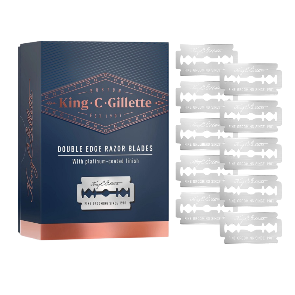 Zapasowe ostrza King C. Gillette Double Edge Razor Blades i ich regularna wymiana to gwarancja wciąż tak samo gładkiego golenia twarzy jak z nową maszynką do golenia.