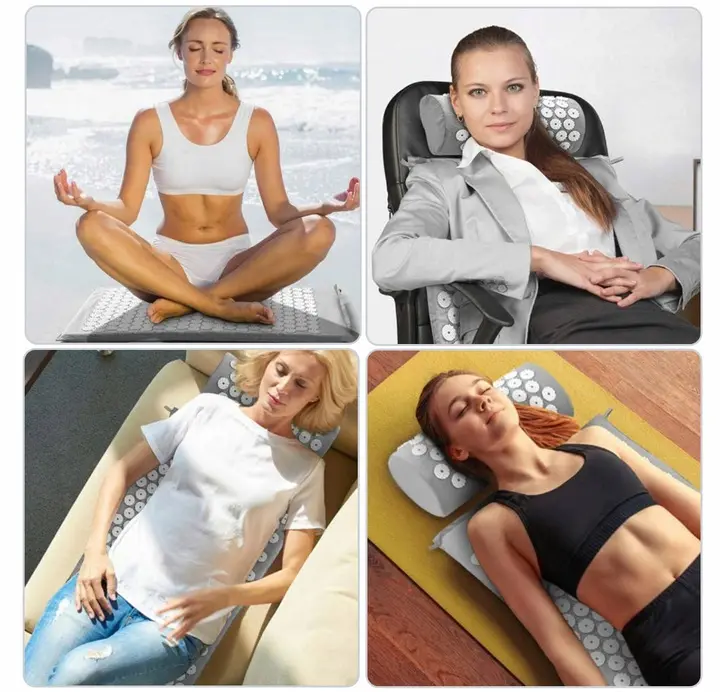 ✅ Zestaw mata + poduszka skutecznie pomaga odprężyć się i zrelaksować ciało, a także złagodzić ból bez potrzeby stosowania dodatkowych środków farmakologicznych.