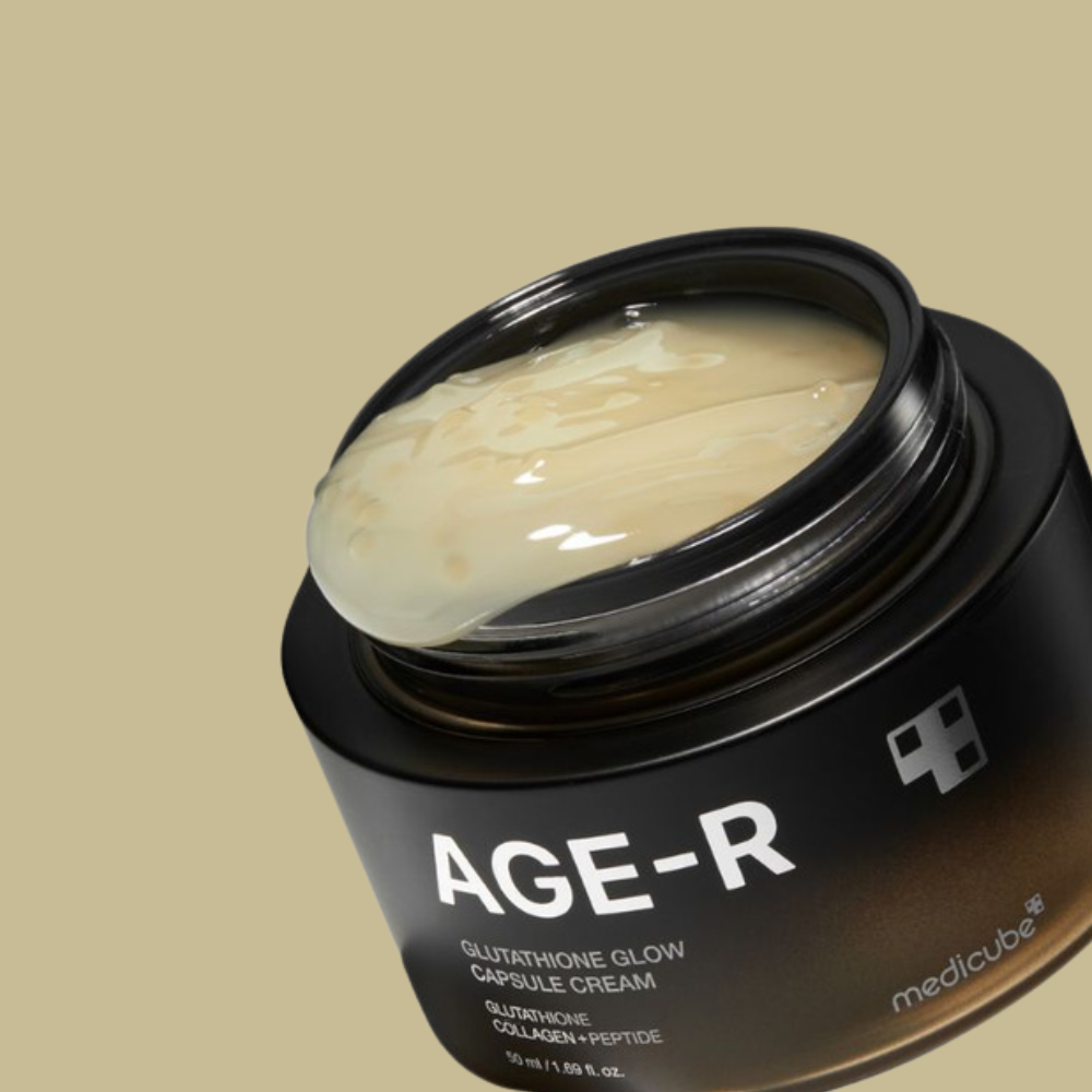 Medicube - AGE-R Glutathione Glow Cream - krem o działaniu przeciwstarzeniowym przeznaczony do codziennej pielęgnacji twarzy. Zawarty w kosmetyku glutation to silny antyoksydant, który dzięki zawartości siarki zmniejszy ilość wydzielanego sebum przez gruczoły łojowe, zniweluje szkodliwe działanie wolnych rodników oraz przyspieszy regenerację komórek naskórka. Dodatek niacynamidu zmniejszy stany zapalne i widoczność rozszerzonych porów, a także zapobiegnie powstawaniu przebarwień. Występujące w kremie peptydy poprawią poziom nawilżenia skóry, a ceramid NP jako składnik cementu międzykomórkowego odbuduje oraz wzmocni barierę hydrolipidową naskórka. Natomiast kolagen, który jest naturalnym budulcem występujący w tkankach, poprawi jędrność i elastyczność skóry, a także wypełni drobne zmarszczki.