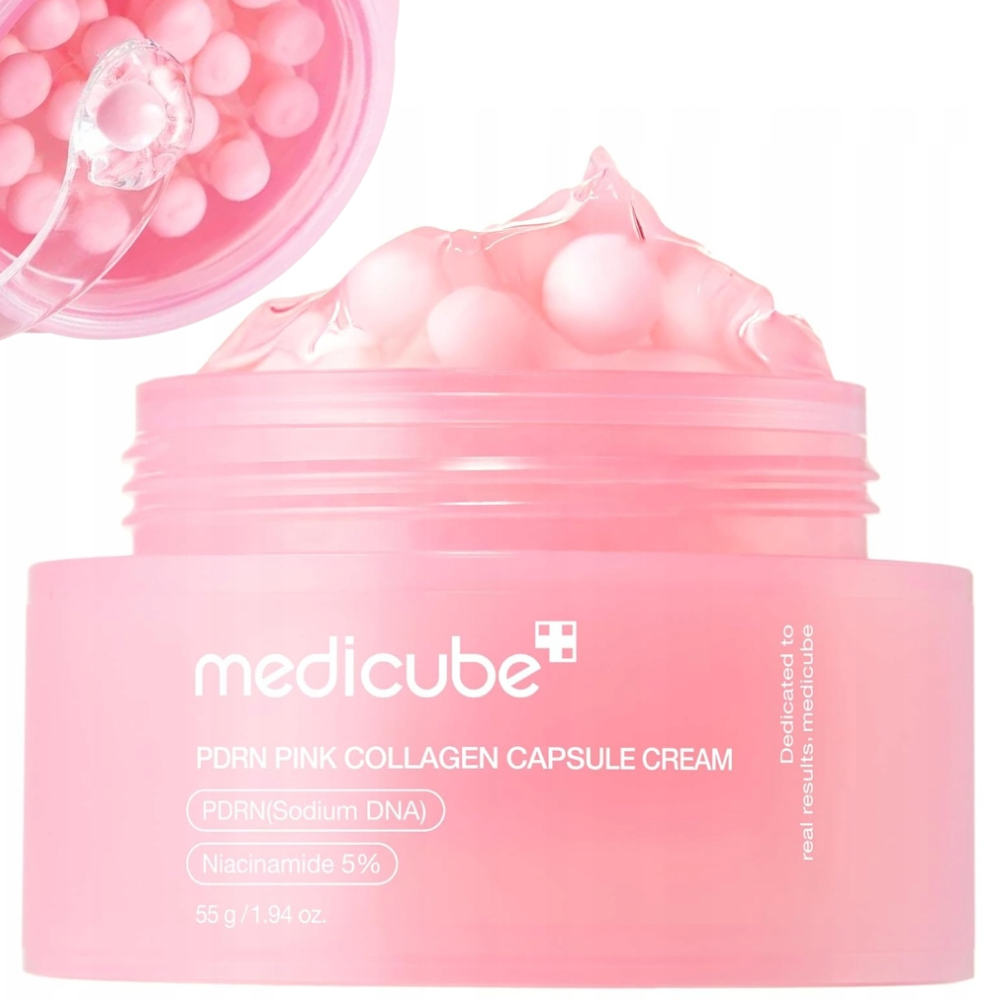 Medicube PDRN Pink Capsule Cream to innowacyjny krem z różowymi kapsułkami i DNA łososia PDRN, który nawilża, rozjaśnia oraz wzmacnia barierę ochronną skóry. Unikalna formuła 2w1 zapewnia efekt glass skin i poprawia elastyczność cery. Możliwość dostosowania proporcji kapsułek do żelu pozwala na spersonalizowaną pielęgnację. Idealny dla skóry suchej, normalnej, mieszanej i wrażliwej.