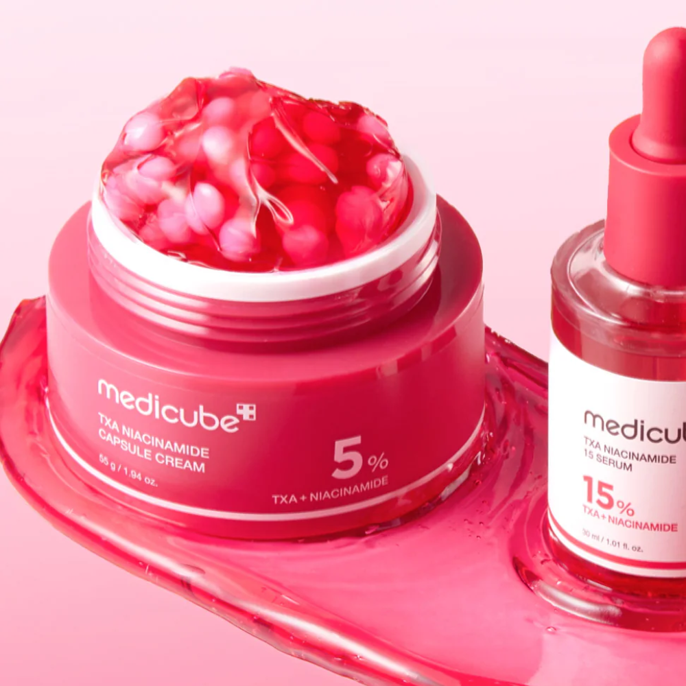 Medicube TXA Niacinamide Capsule Cream – krem rozjaśniający z kapsułkami TXA i niacynamidemZaawansowany krem do twarzy z mikrokapsułkami rozjaśniającymi, łączący działanie kwasu traneksamowego (TXA) i niacynamidu. Skoncentrowana formuła niweluje przebarwienia, wyrównuje koloryt skóry oraz wspomaga naturalne procesy regeneracyjne. Idealny dla osób zmagających się z plamami pigmentacyjnymi, pozostałościami po trądziku i nierównym kolorytem cery.