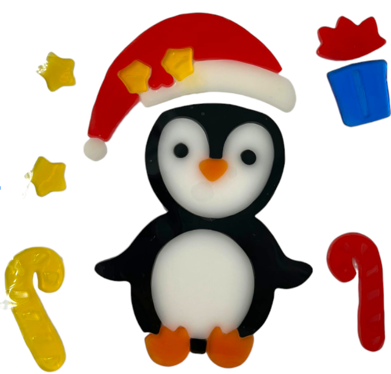 NAKLEJKI NA OKNO ŻELOWE PINGWIN Z CZAPKĄ BOŻE NARODZENIE ŚWIĘTA OZDOBA