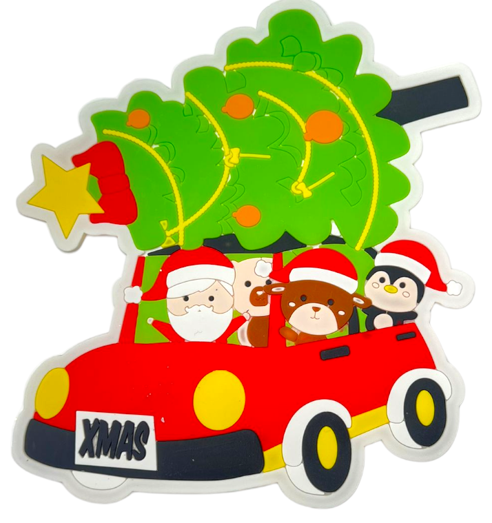 NAKLEJKI ŻELOWE ŚWIATECZNE AUTO Z PREZENTAMI NA SZYBĘ LUSTRO MIKOŁAJ