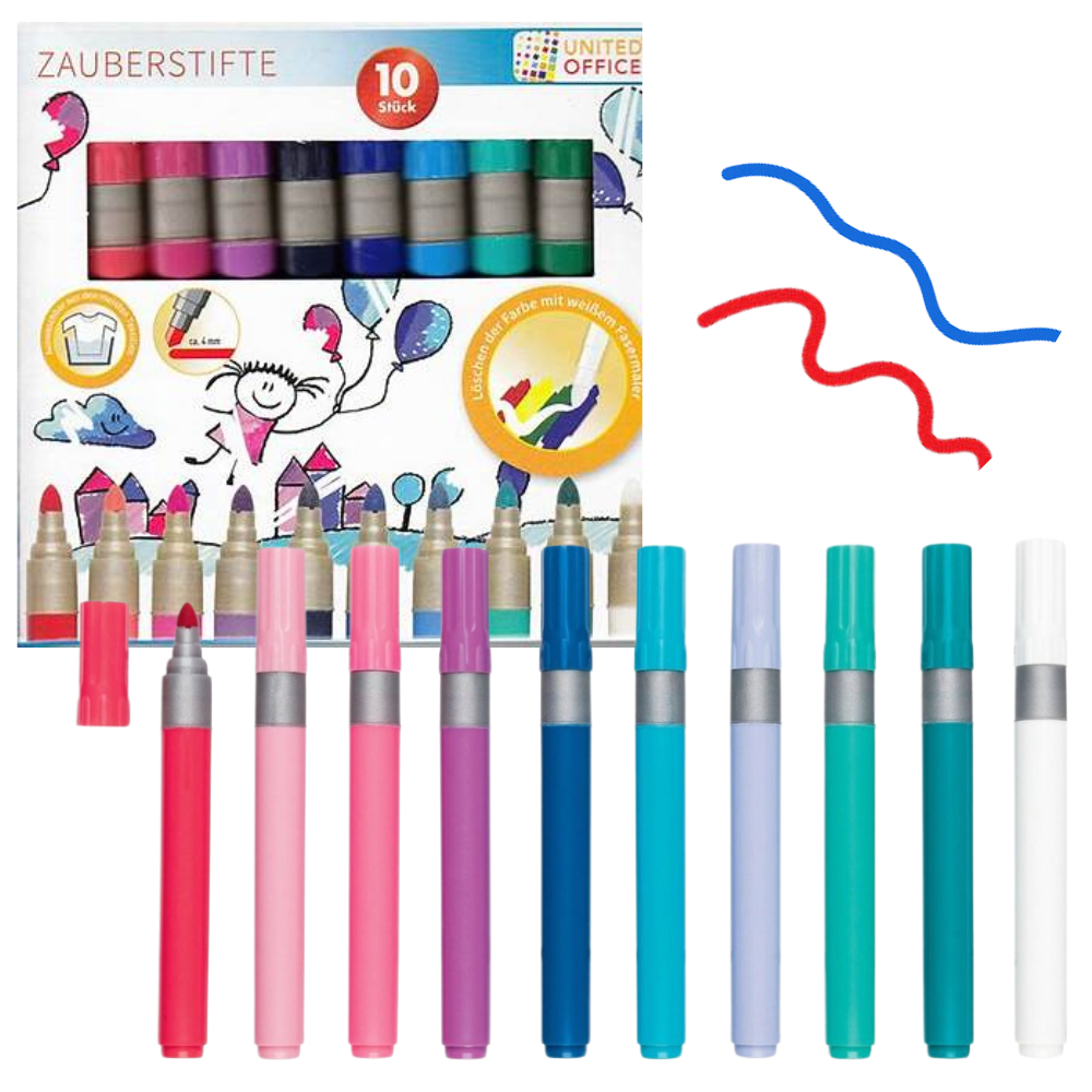 ✅ Mazaki zmieniają kolor (kolor zatyczki informuje na jaki kolor zmieni się rysunek) pod białym mazakiem dołączonym do zestawu.