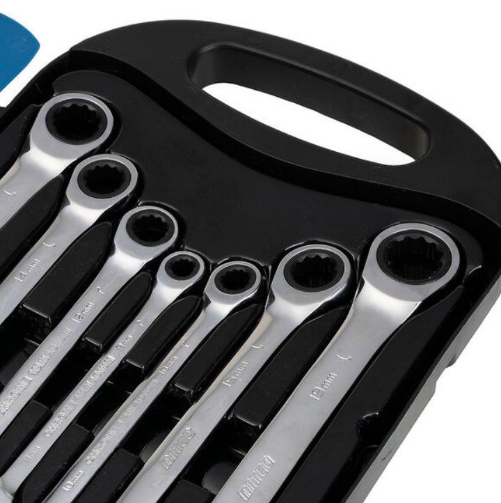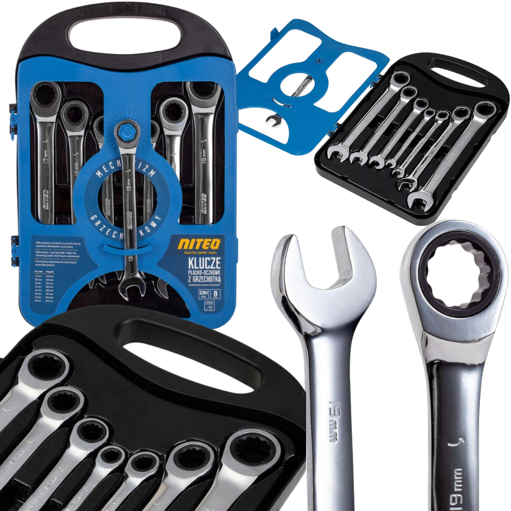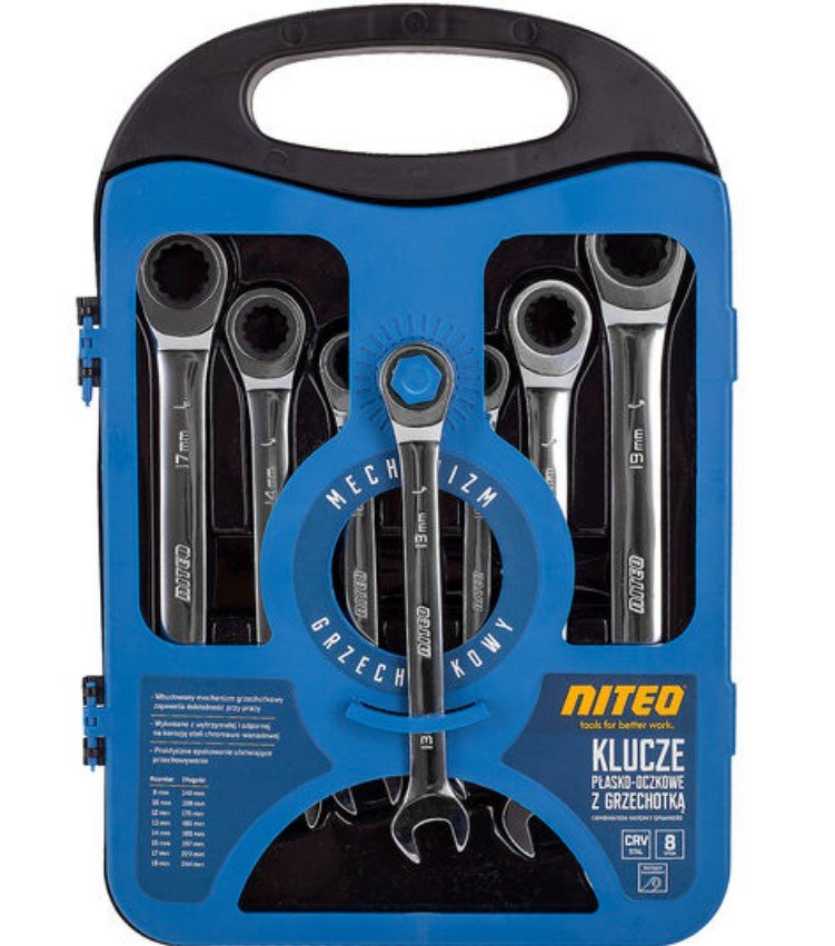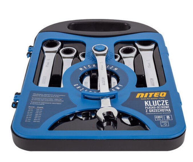 Klucze płasko-oczkowe z grzechotką NITEO to niezbędne wyposażenie każdego domu i garażu! Uniwersalne rozmiary kluczy umożliwiają wykonywanie szerokiego spektrum prac, a wbudowany mechanizm zapadkowy zapewnia dokładność przy pracy. Stal chromowo-wanadowa, z której wykonane są klucze jest niezwykle wytrzymała i odporna na korozję. Klucze płasko-oczkowe od NITEO to idealny wybór dla każdego majsterkowicza! To praktyczne narzędzia, które ułatwią wiele prac warsztatowych i mechanicznych. Prawdziwy niezbędnik wyposażenia każdego warsztatu.