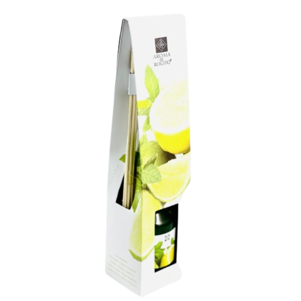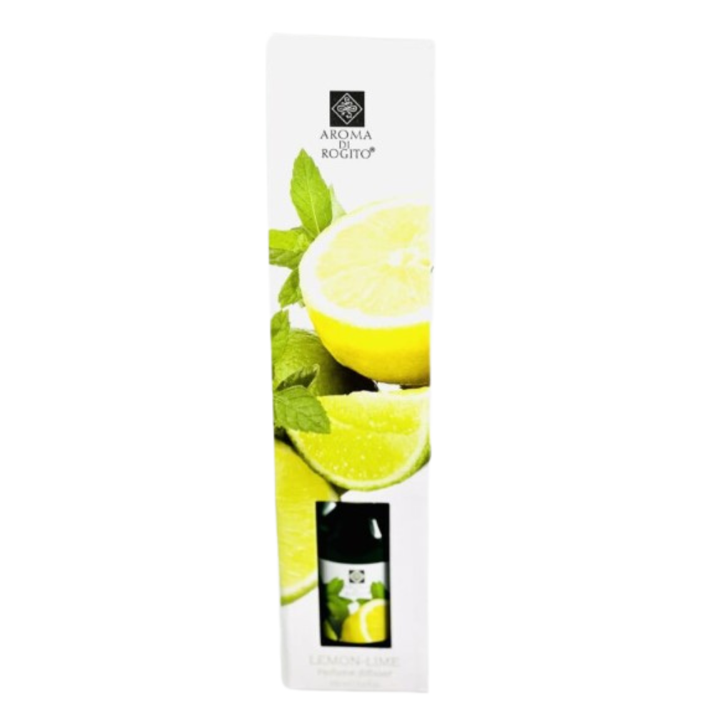 Odświeżacz powietrza Aroma Di Rogito Lemon Lime to wyjątkowy produkt, który stworzony został, by dodać świeżości i przyjemnej woni do Twojego otoczenia. Patyczki zapachowe w połączeniu z delikatnym aromatem cytrusów stworzą atmosferę relaksu i komfortu. Dzięki pojemności 100ml, odświeżacz ten długo zachowa intensywność zapachu. Idealny do zastosowania w salonie, sypialni czy biurze. Wprowadź do swojego domu nutę natury i poczuj się otulony przyjemnym zapachem cytrusów.