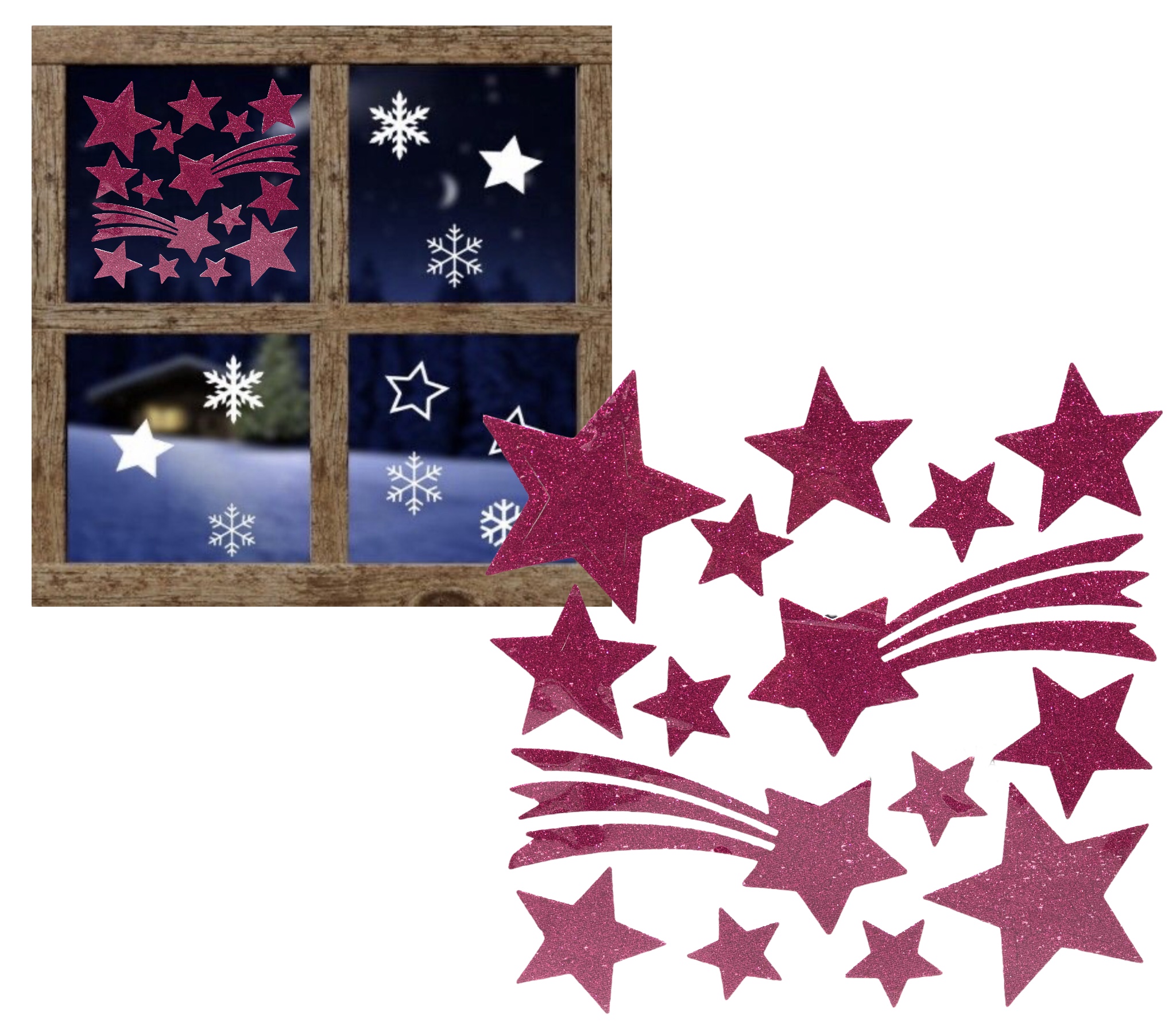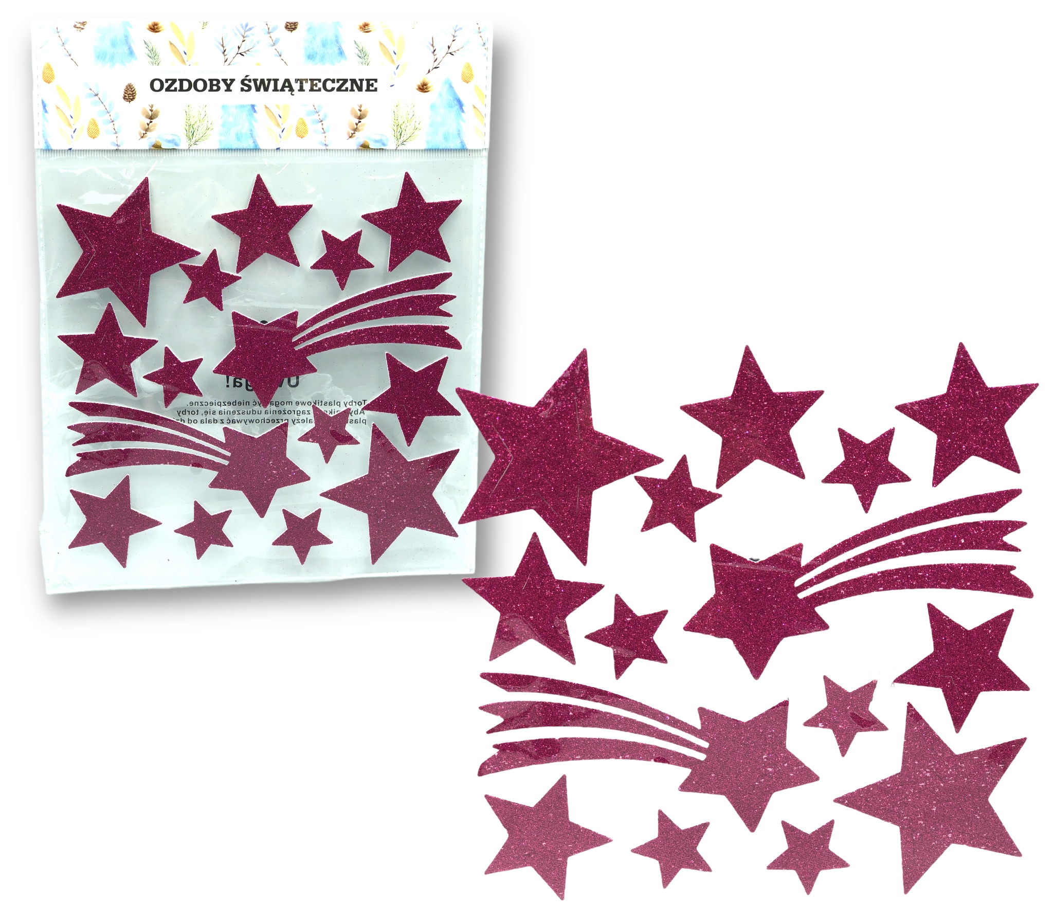 OZDOBY ŚWIĄTECZNE NA OKNO GWIAZKI RÓŻOWE BŁYSZCZĄCE XST510-21