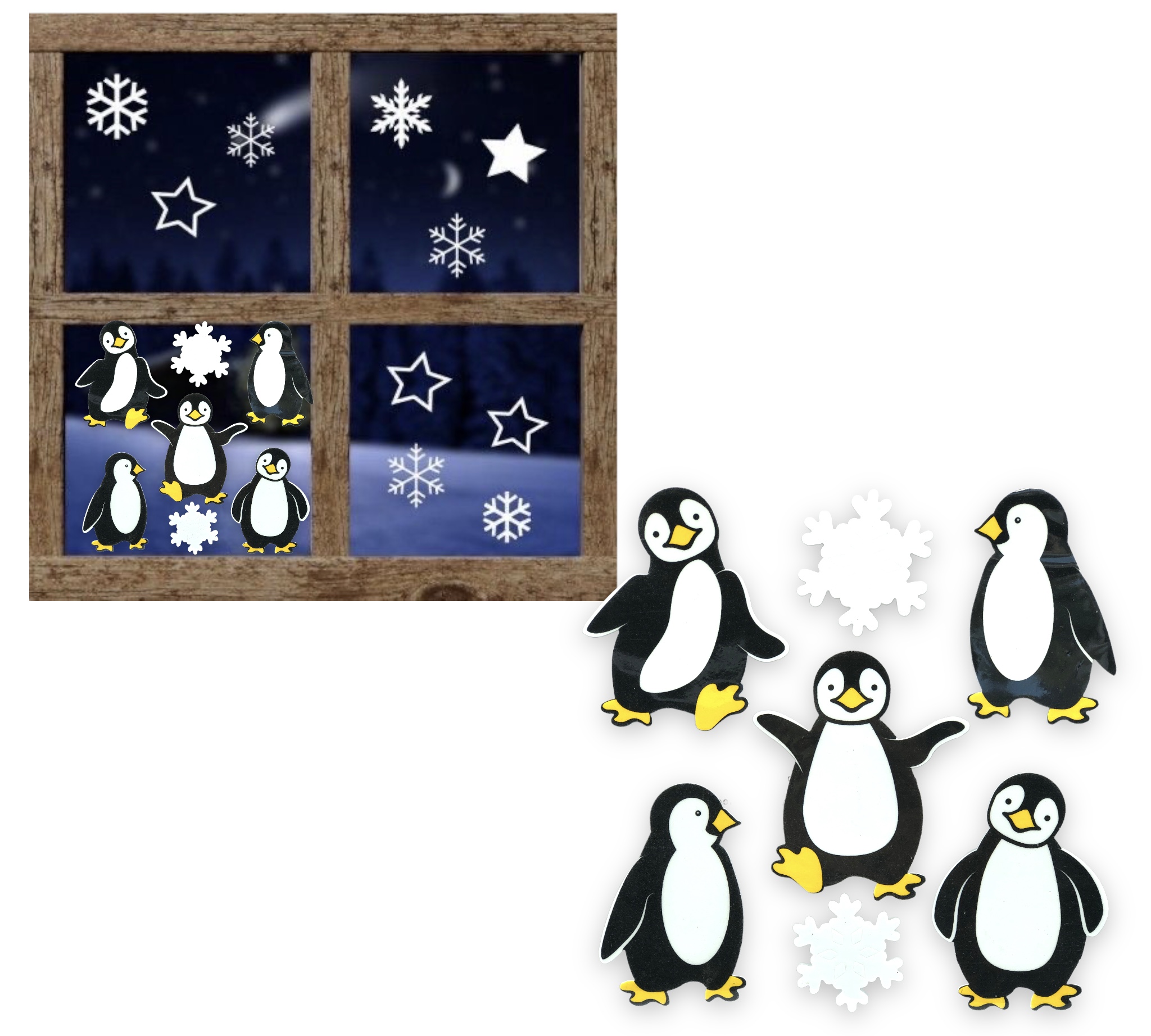 DEKORACJA ŚWIĄTECZNA NAKLEJKA OZDOBY ŚWIĄTECZNE NA OKNO PINGWINKI NAKLEJKI