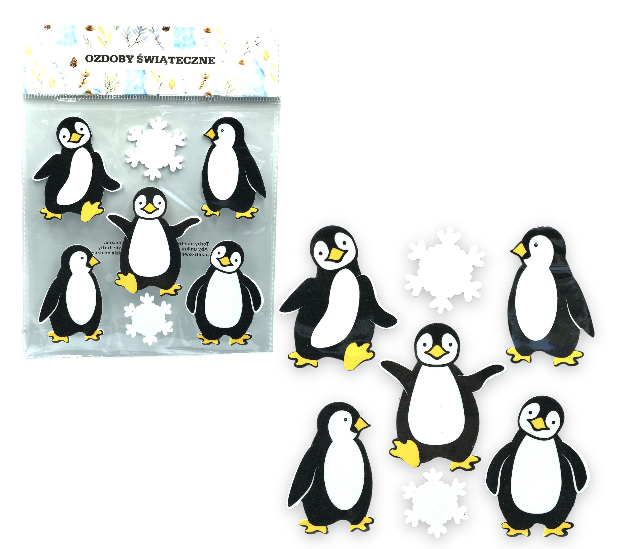 OZDOBY ŚWIĄTECZNE ZIMOWE NA OKNO PINGWINY ŚNIEŻYNKI