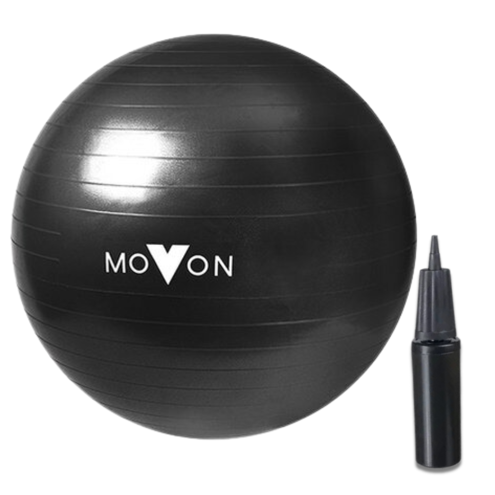 PIŁKA FITNESS GIMNASTYCZNA 75CM CZARNA Z POMPKĄ MOVON