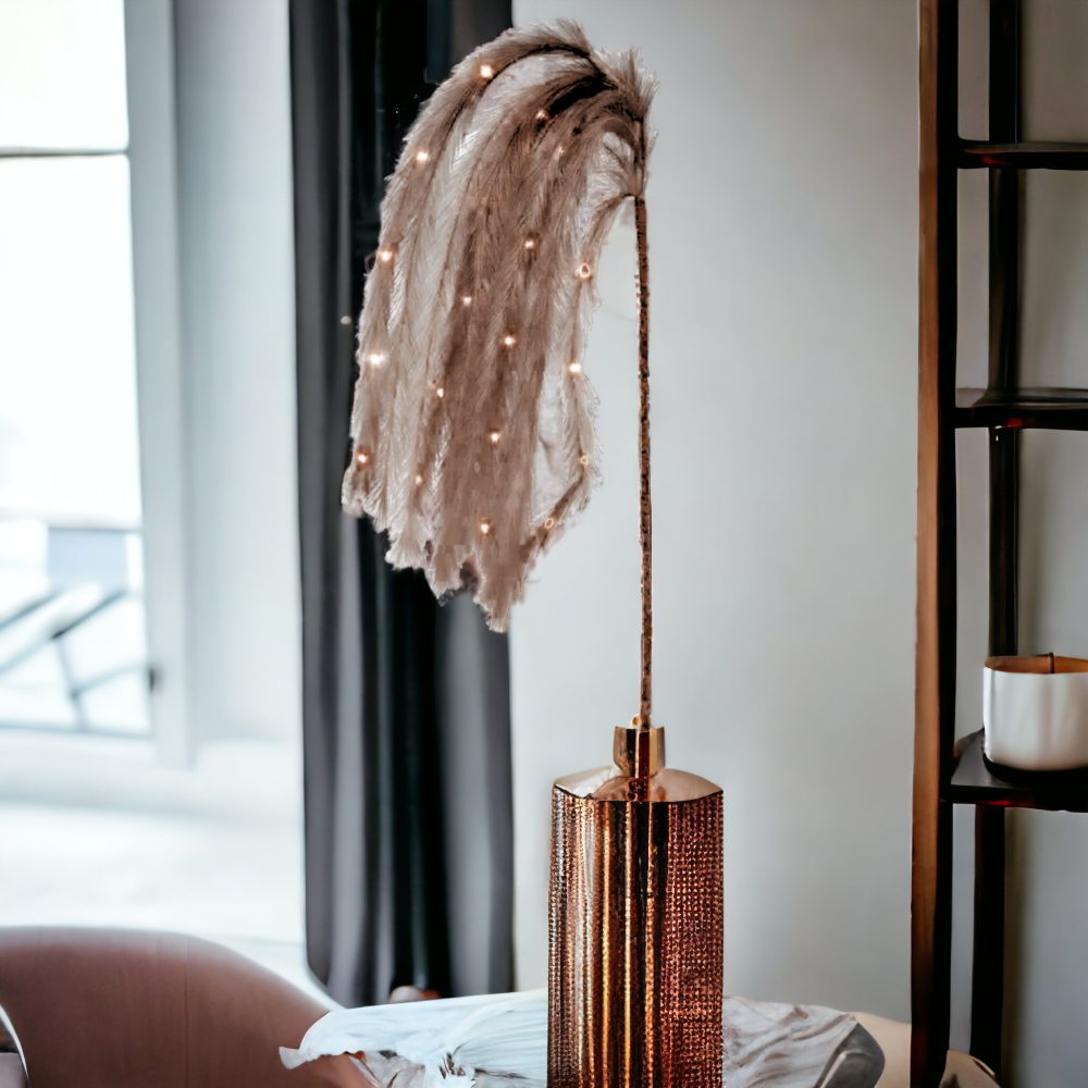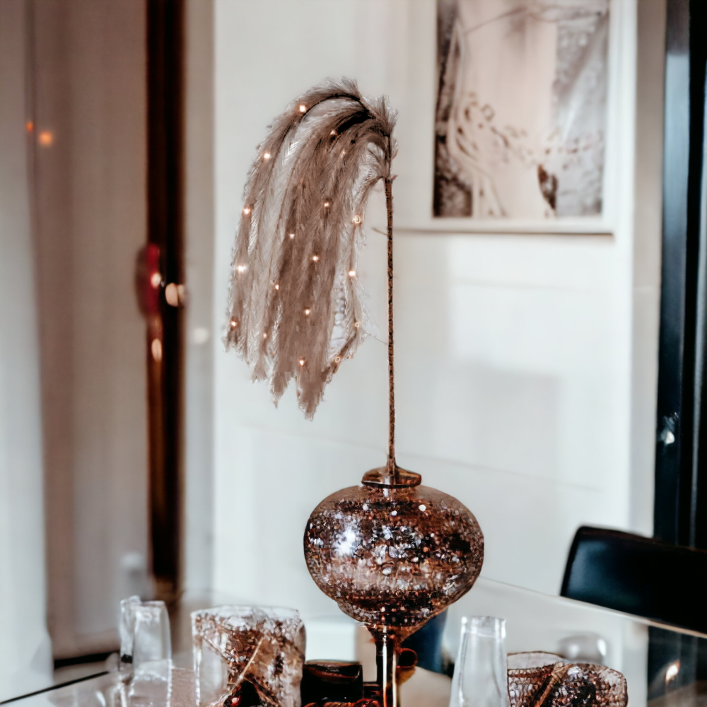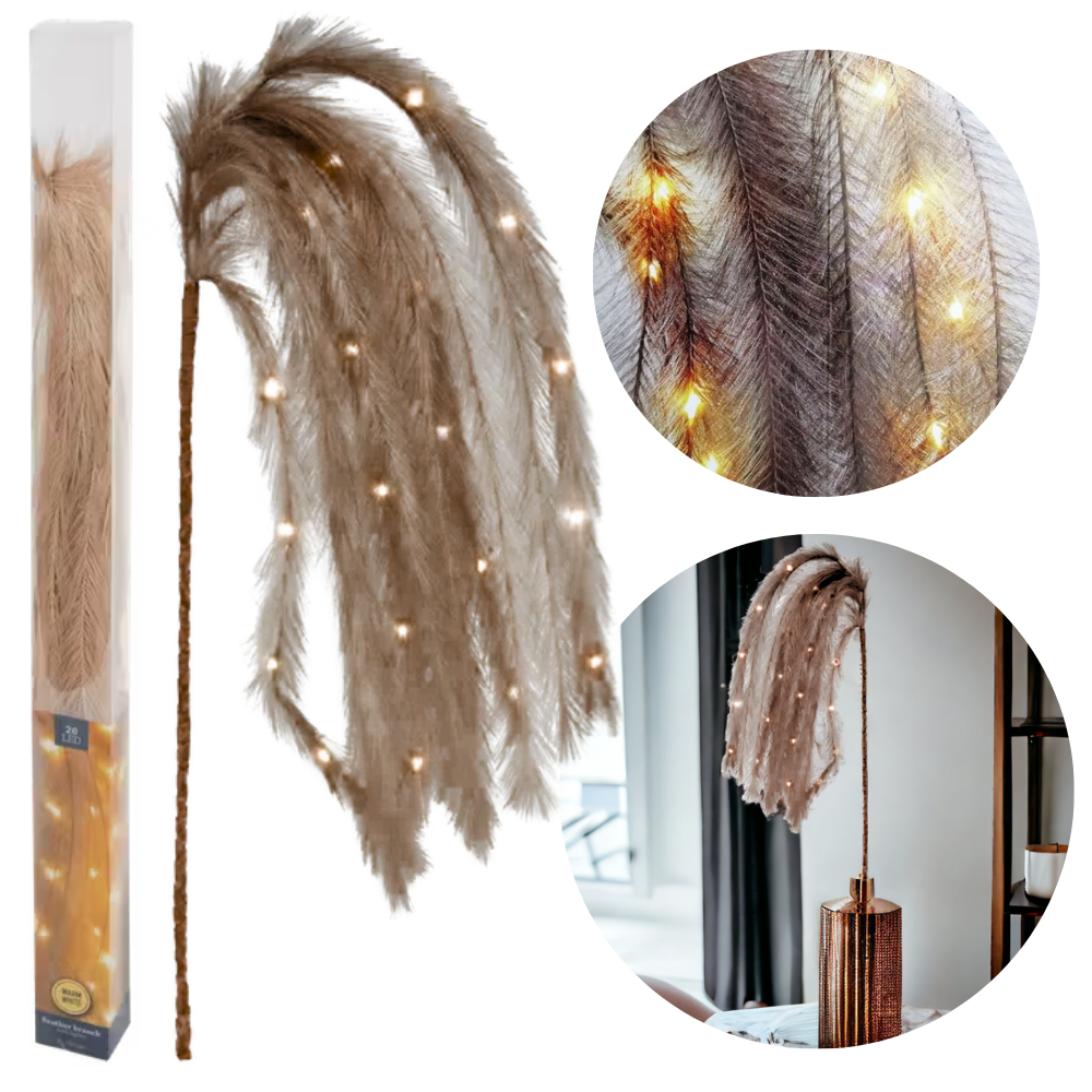 PIÓRA 20LED BRĄZOWE DEKORACYJNE ŚWIECĄCE OZDOBNE TRAWA PAMPASOWA IMITACJA