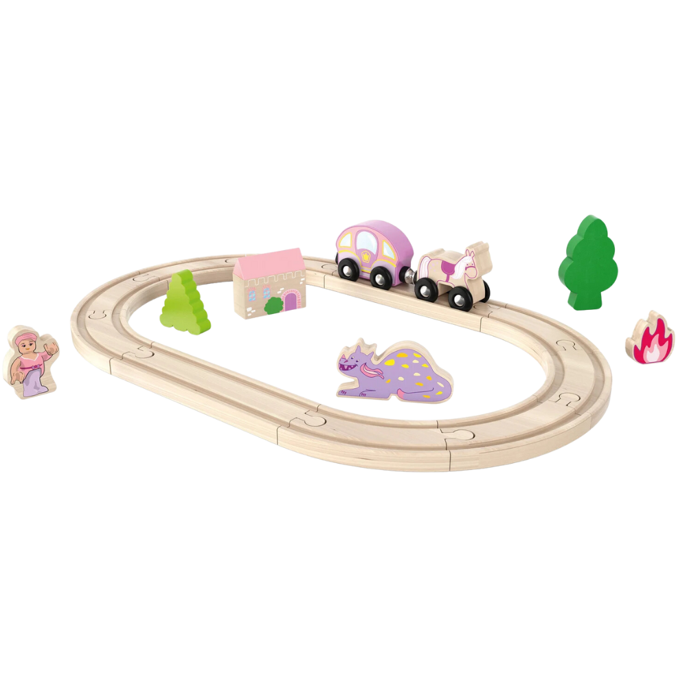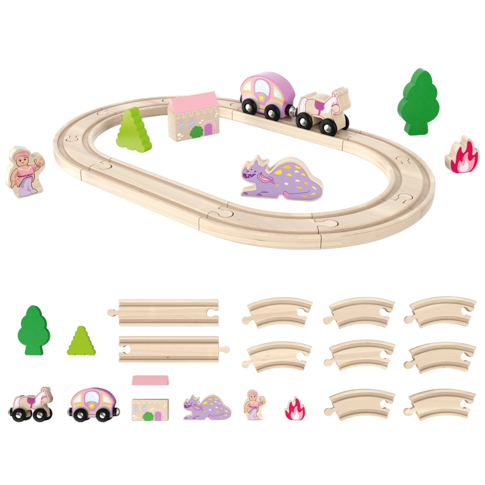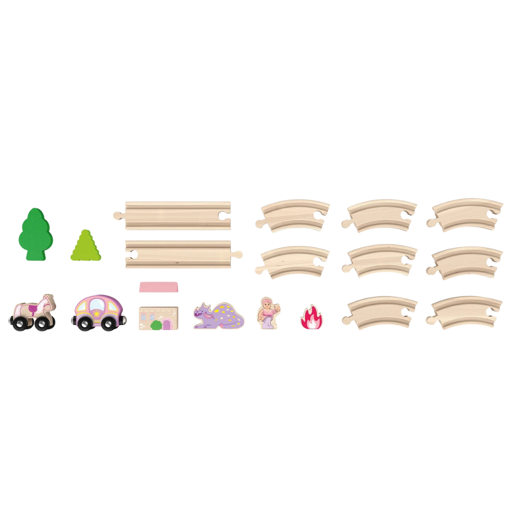 PLAYTIVE DREWNIANY ZESTAW KOLEJKA RÓŻOWY KSIĘŻNICZKA 18 ELEMENTÓW