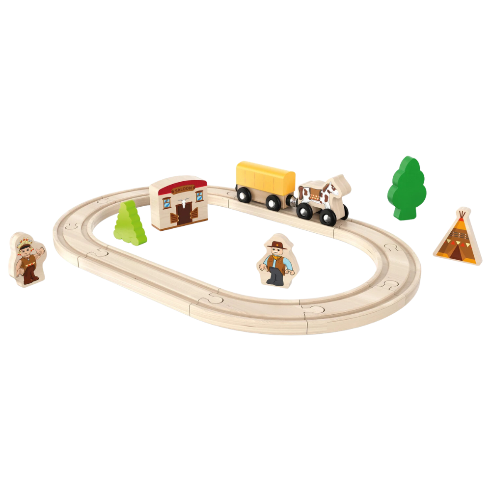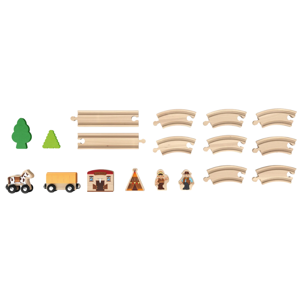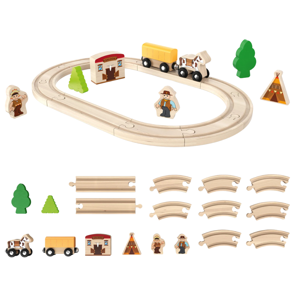 PLAYTIVE DREWNIANY ZESTAW KOLEJKA ŻÓŁTY DZIKI ZACHÓD 18 ELEMENTÓW