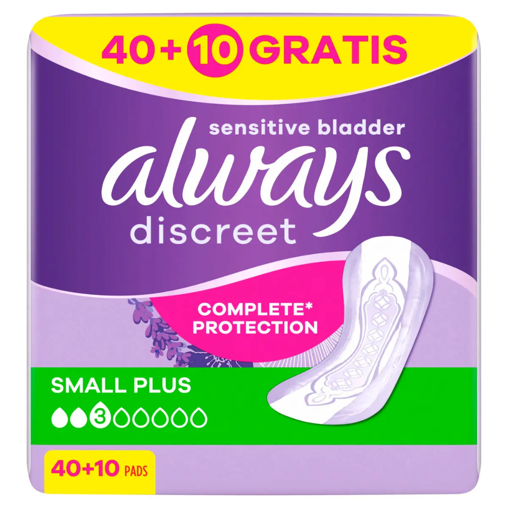 Wkładki chłonne Always Discreet dla kobiet, małe plus, 50 sztuk