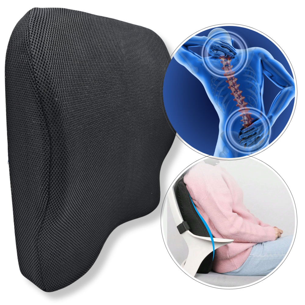 PODUSZKA LĘDŹWIOWA POD PLECY CZARNA BC1 ŁAGODZI BÓLE NA FOTEL KRZESŁO
