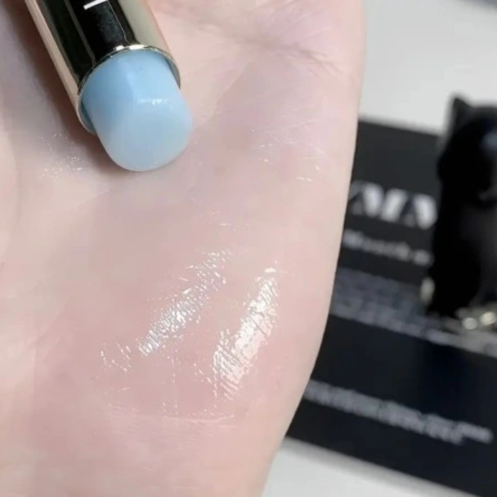 Balsam ma delikatny niebieski odcień, który nie zmienia koloru ust.