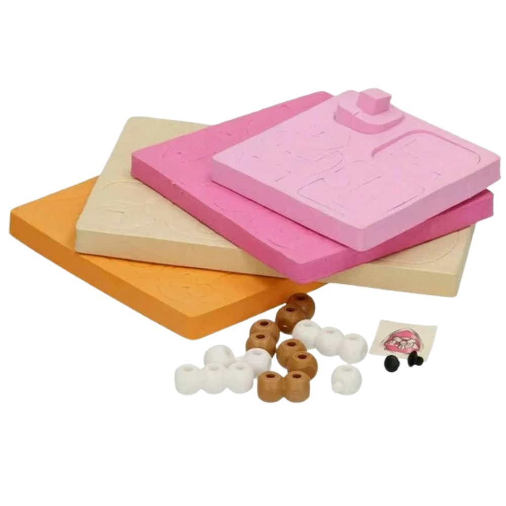 - Zestaw zawiera 48 elementów które trzeba wycisnąć z szablonu co już jest wielka frajdą dla malucha.