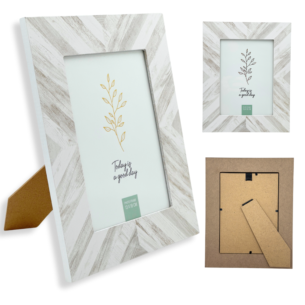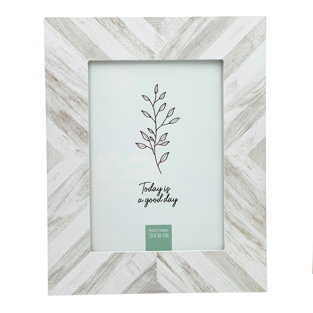 RAMKA NA ZDJĘCIA SALENTO 13X18CM MOTYW JODEŁKI BIAŁO-SZARA TODAY IS A GOOD DAY