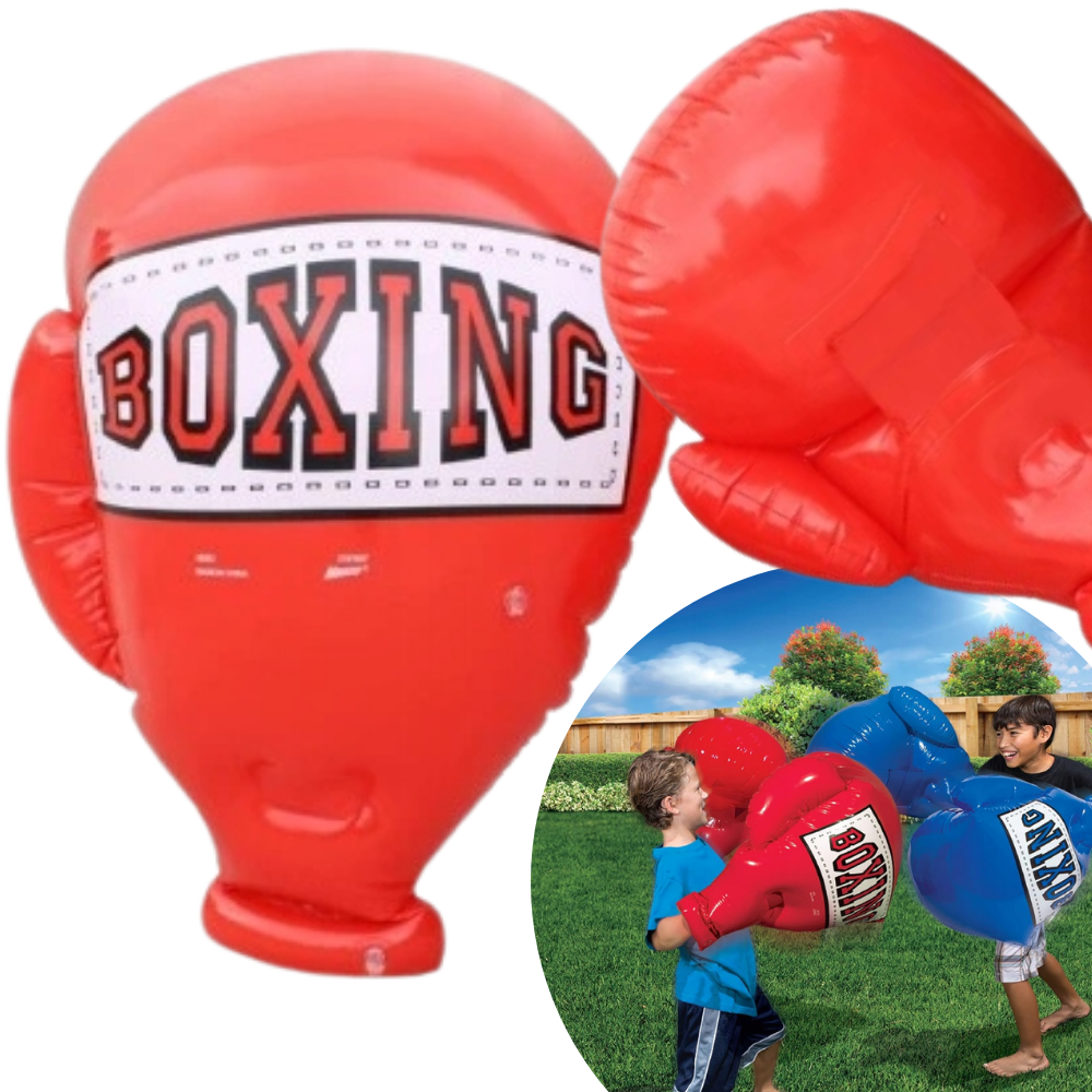 Nadmuchiwane rękawice prezentują się doskonale i gwarantują niebolesne i bezpieczne ciosy podczas zabawy na wymyślonym ringu. Powietrzne ochraniacze mają gigantyczny rozmiar i bardzo zabawnie wyglądają na dziecięcych rączkach. Mali pięściarze zorganizują szalone pojedynki na trawie. Konstrukcja zabawki jest wytrzymała i odporna na rozdarcia.