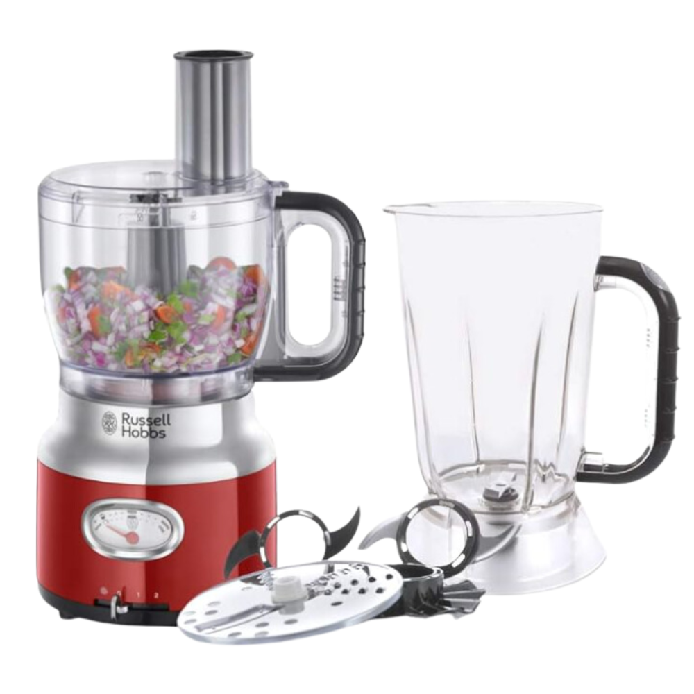 Nie tylko doskonale wykonuje swoje zadania, ale także prezentuje się wyjątkowo. Jego elegancki, retro-stylowy design z czerwonym wykończeniem dodaje uroku Twojej kuchni. Robot kuchenny Retro Ribbon to nie tylko praktyczne narzędzie, ale również pożądany element dekoracyjny.
