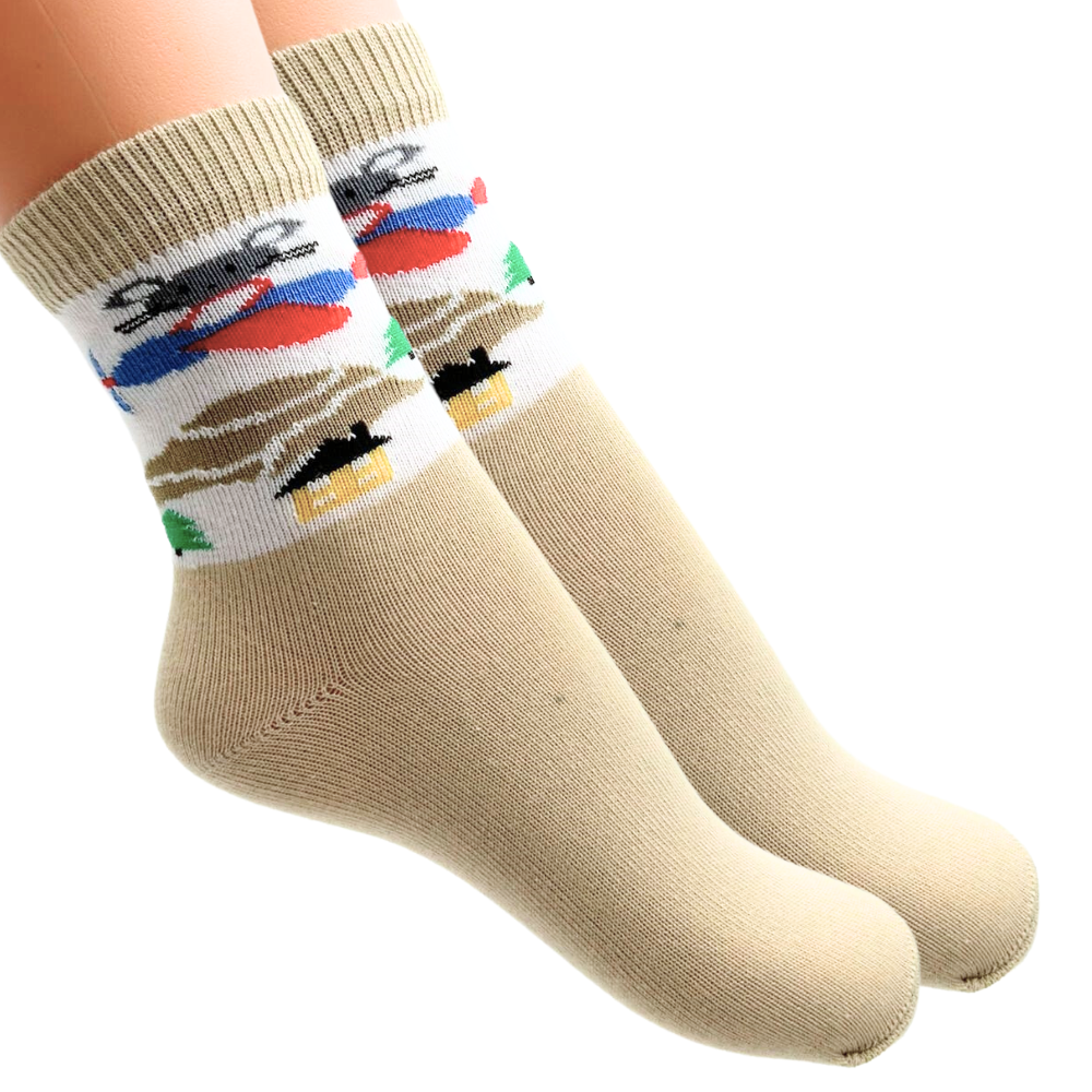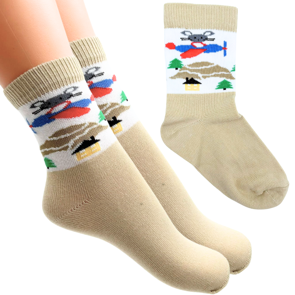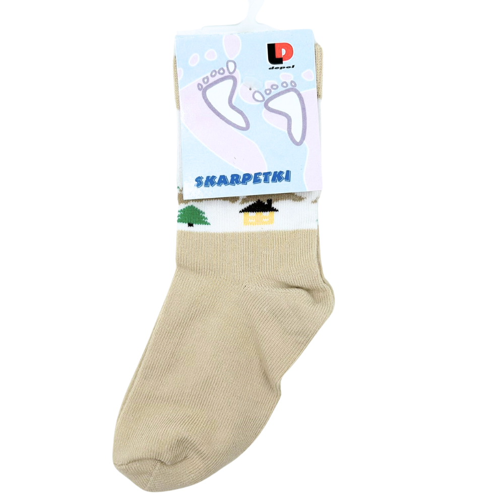 SKARPETKI DZIECIĘCE BEŻOWO-BIAŁE Z MYSZKĄ 15-16 DEPOL