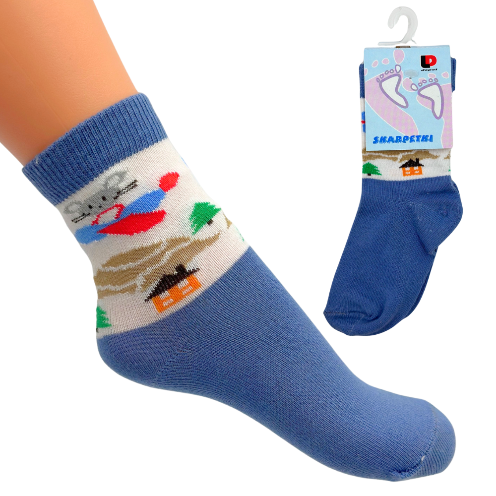 SKARPETKI DZIECIĘCE JEANSOWO-BIAŁE Z MYSZKĄ 15-16 DEPOL