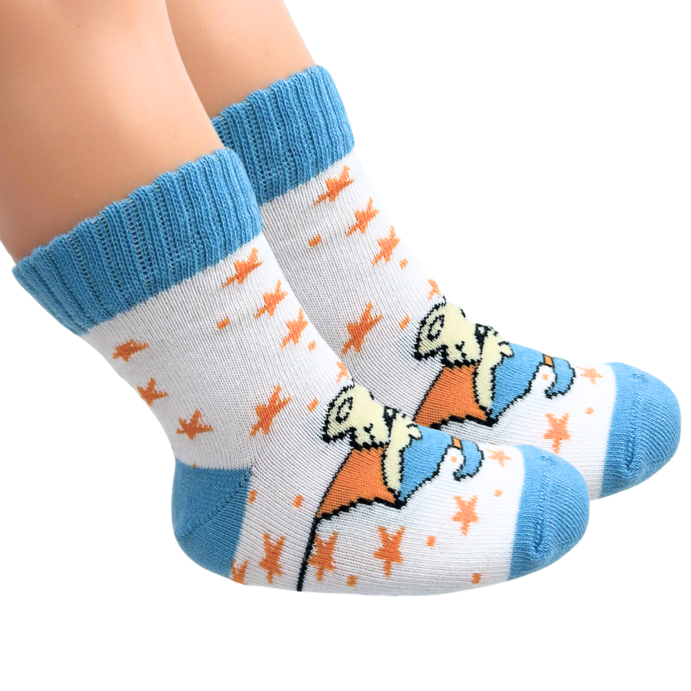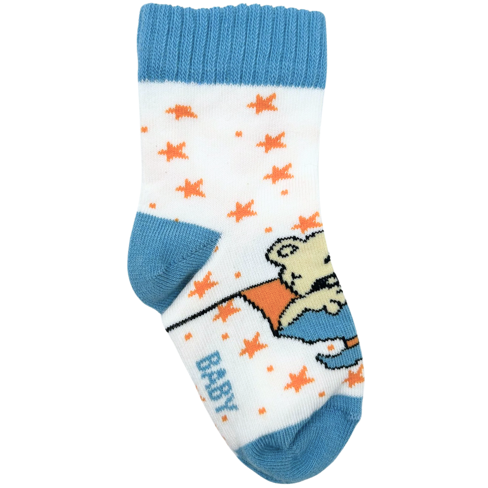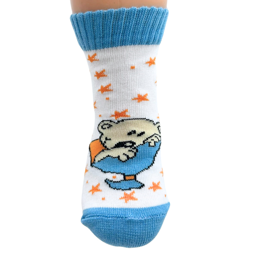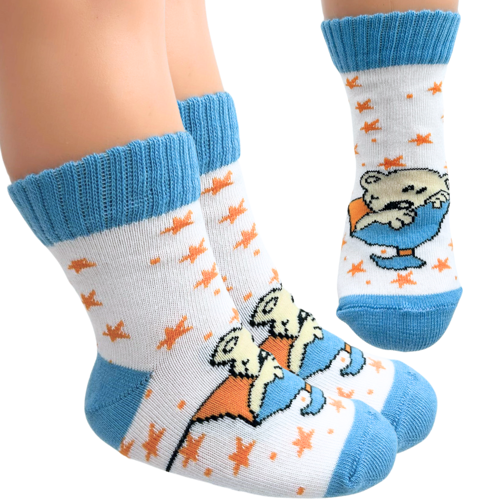 SKARPETKI DZIECIĘCE Z MISIEM POMARAŃCZOWE GWIAZDKI NIEBIESKIE WYKOŃCZENIE