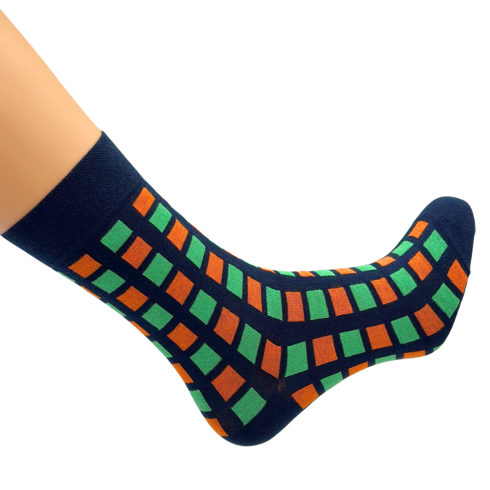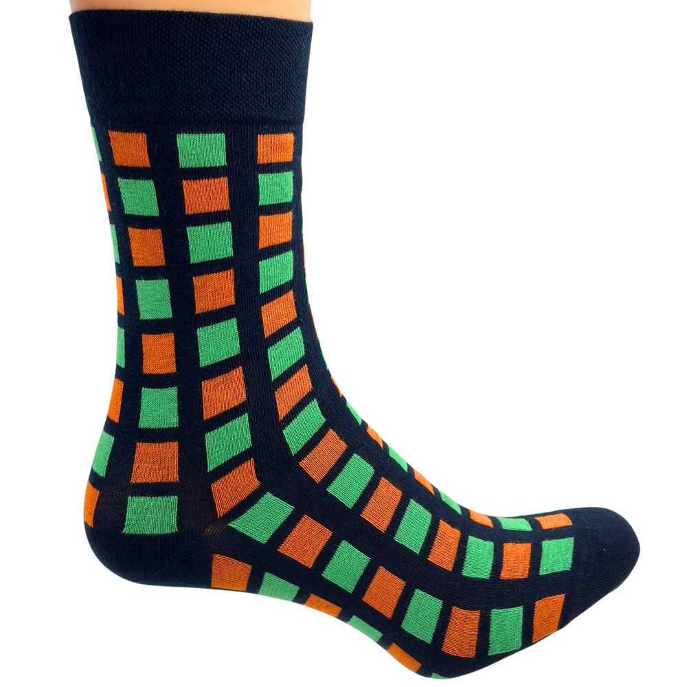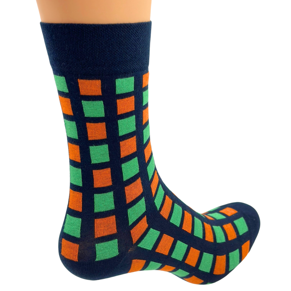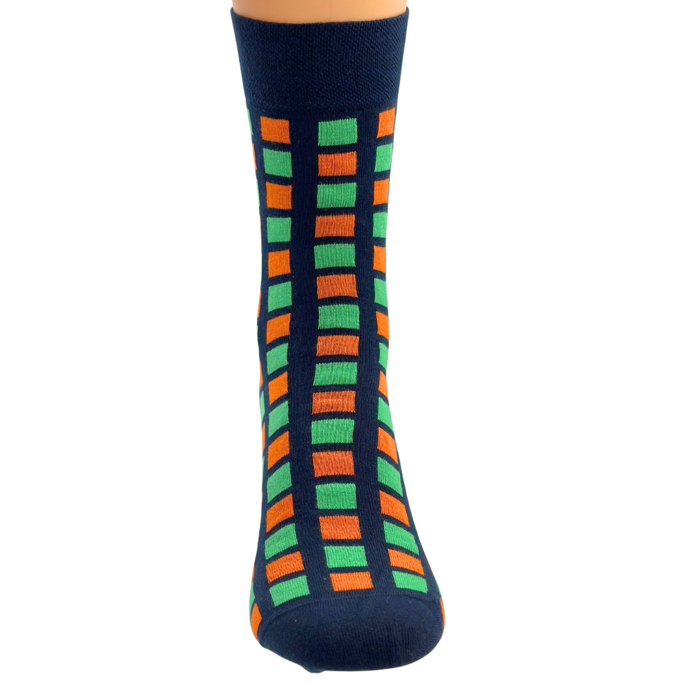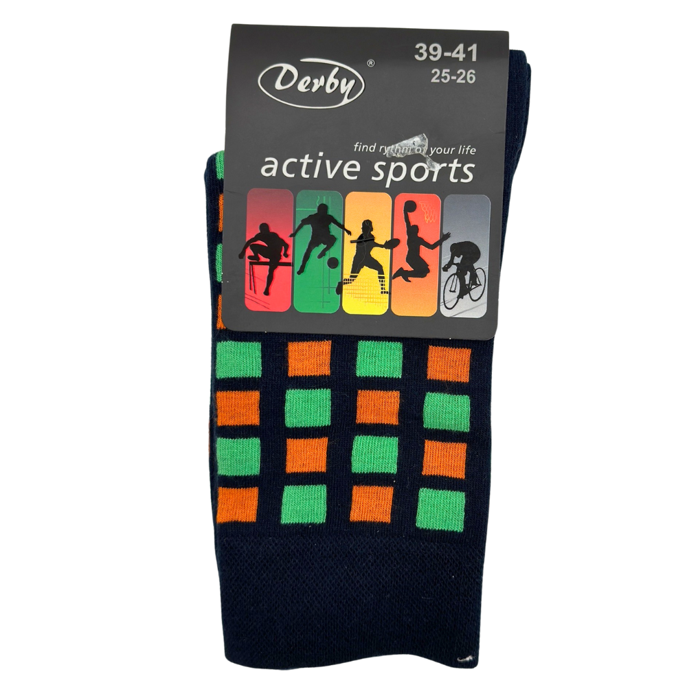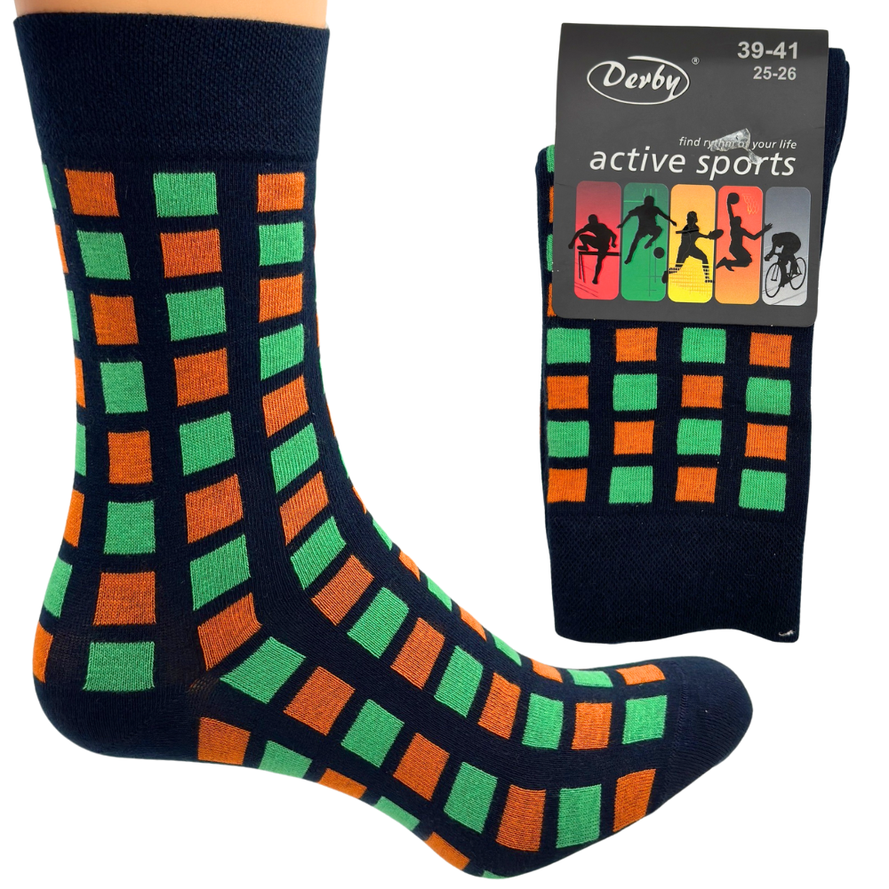 SKARPETKI MĘSKIE ACTIVE 39-41 DERBY GRANATOWE KWADRACIKI ZIELONO-POMARAŃCZO