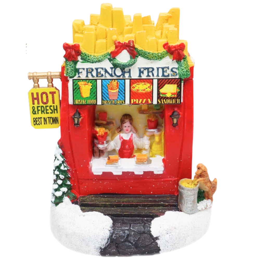 BOŻONARODZENIOWA FIGURKA ŚWIĄTECZNA WIOSKA LED SKLEP Z FRYTKAMI