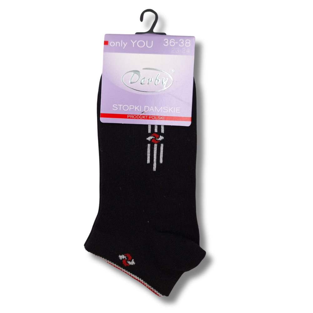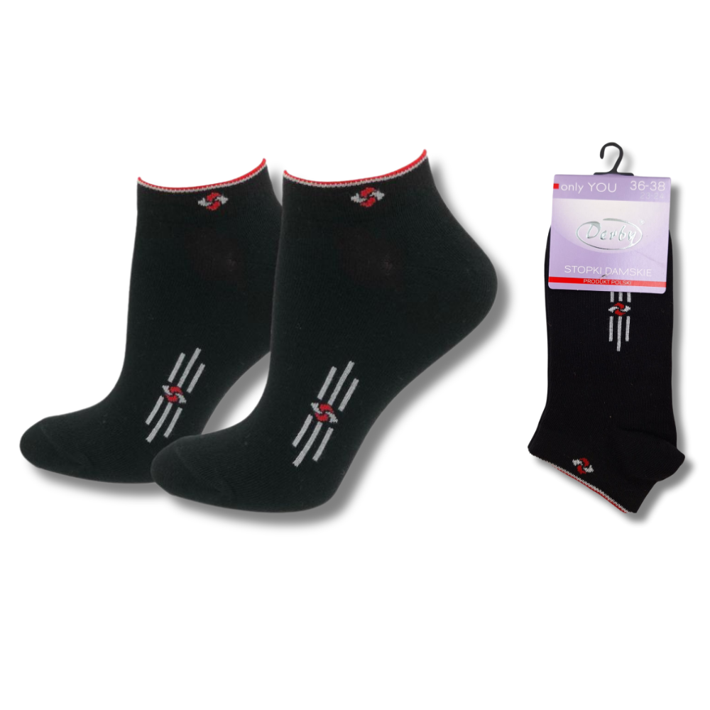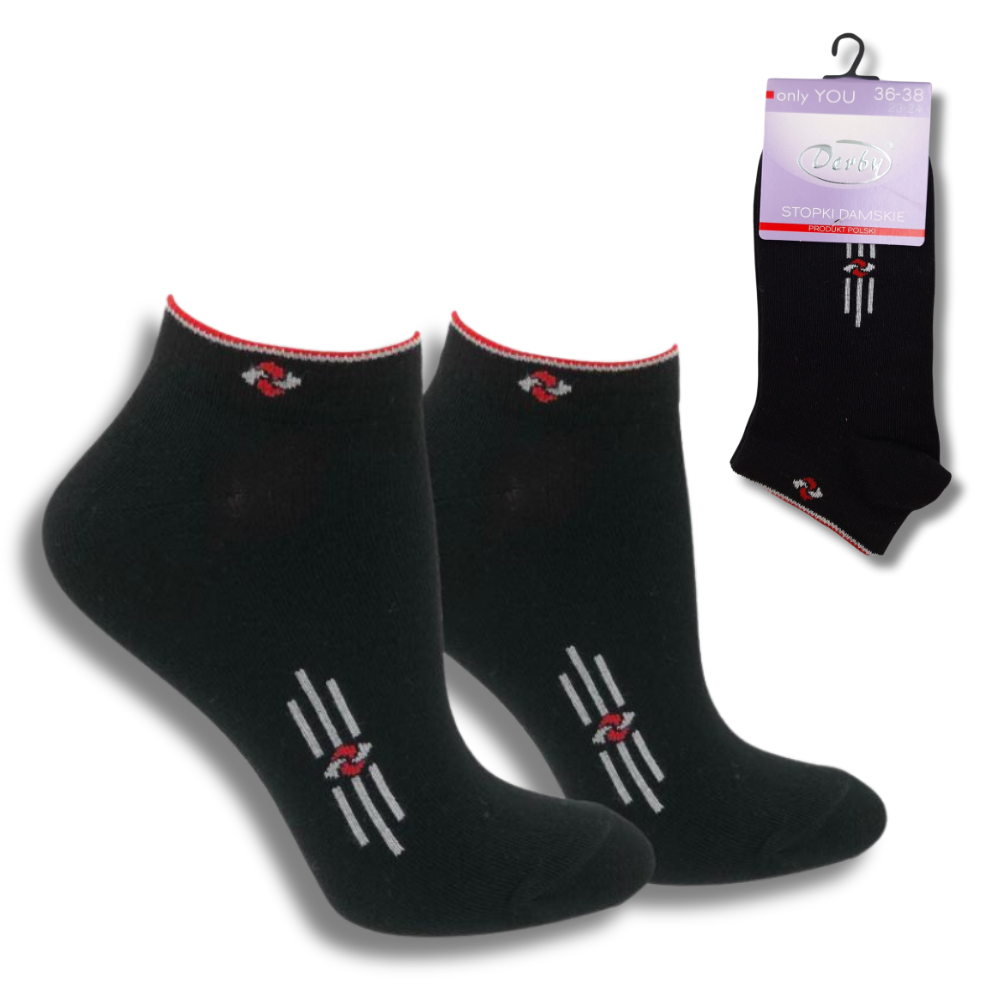Stopki damskie czarne z czerwonym rantem 36-38 DERBY