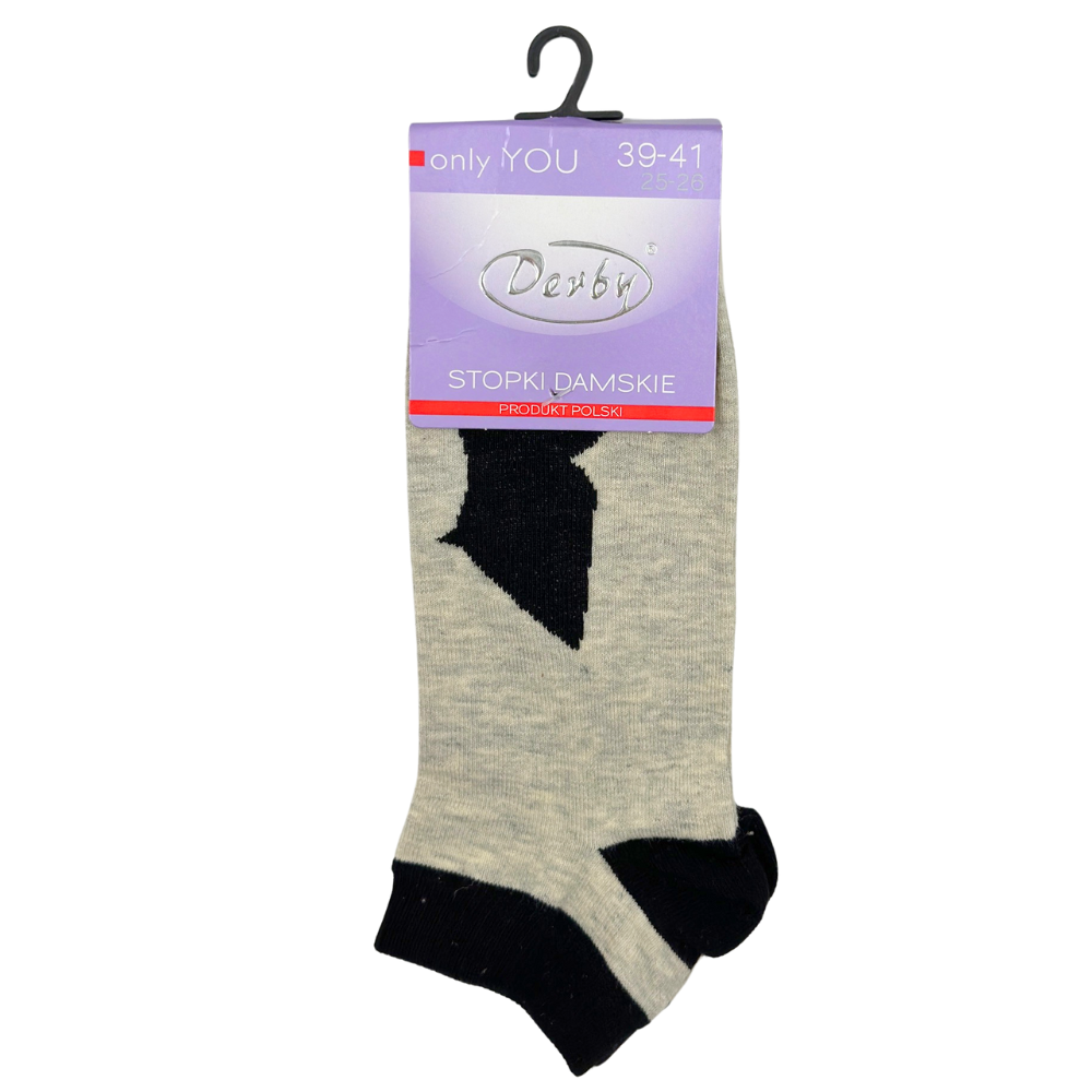 STOPKI DAMSKIE MELANŻOWO-CZARNE 39-41 DERBY
