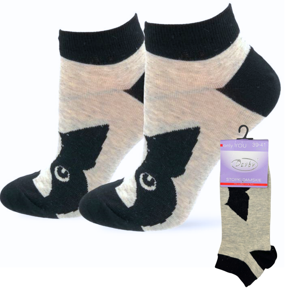 STOPKI DAMSKIE MELANŻOWO-CZARNE 39-41 DERBY BEZUCISKOWE