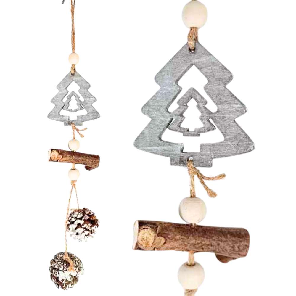✅ Śliczna zawieszka na choinkę wykonana z naturalnego sznurka, szyszek, kawałka drewienka oraz choinki wykonanej z drewna.