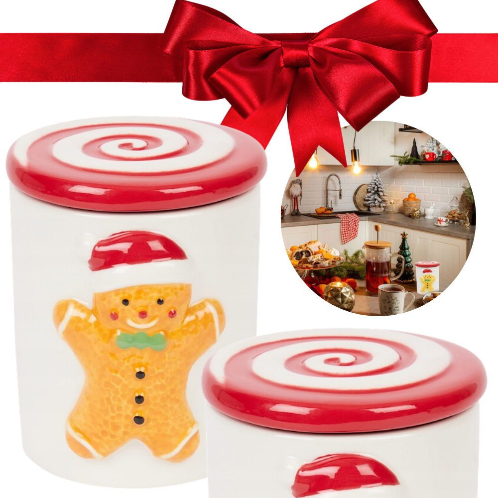 ŚWIĄTECZNY CERAMICZNY POJEMNIK 3D Z POKRYWKĄ CIASTEK