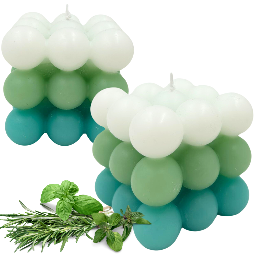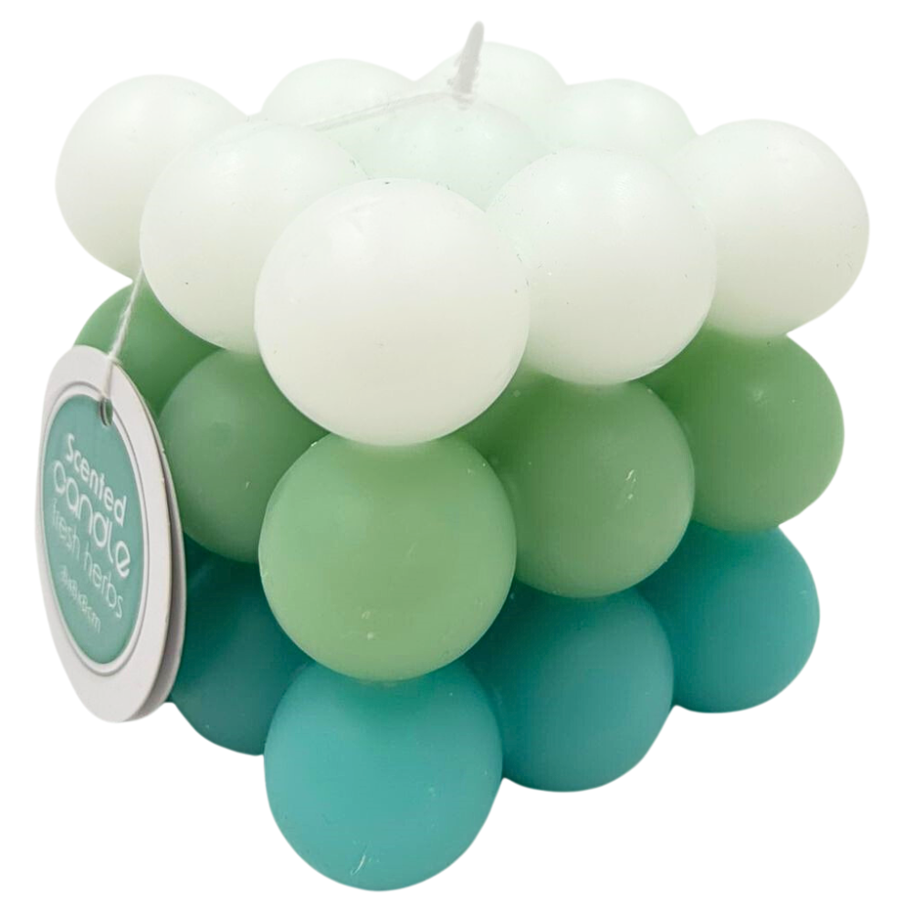 ŚWIECA ŚWIECZKA DEKORACYJNA BĄBELKOWA KOLOROWA BUBBLE 8X8X8CM ŚWIEŻE ZIOŁA