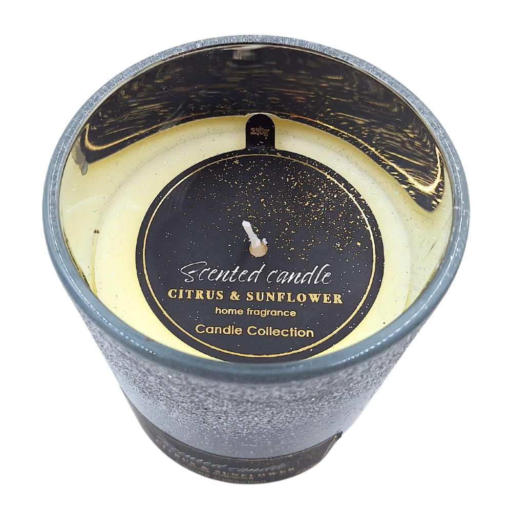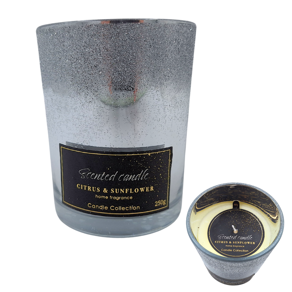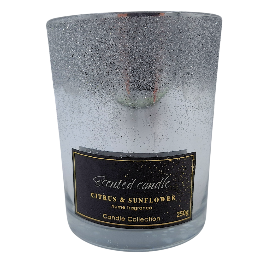 ŚWIECA BROKATOWA SREBRNA CITRUS & SUNFLOWER