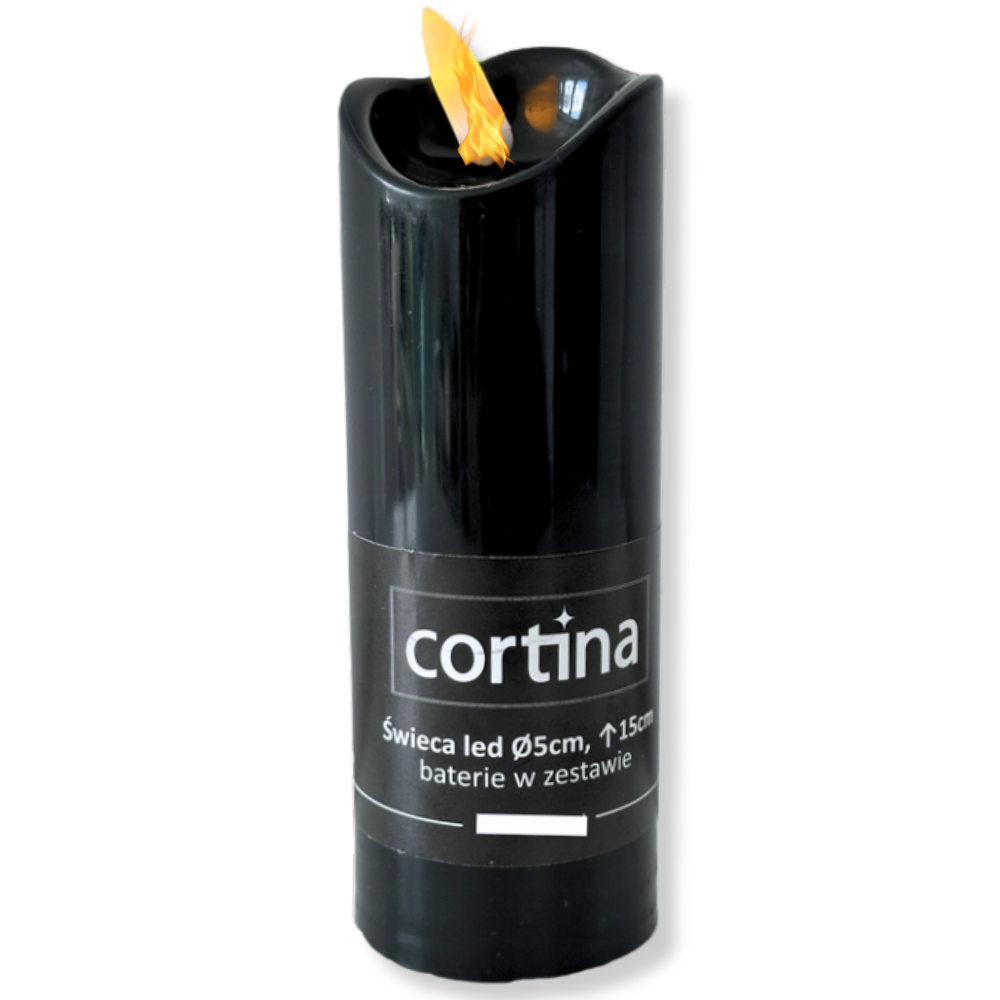 ŚWIECA LED CORTINA 15X5CM CZARNA SZTUCZNY PŁOMIEŃ