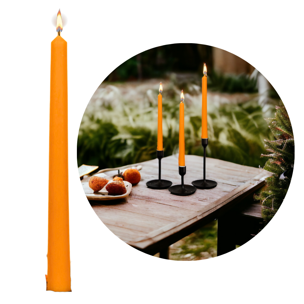 Świeca woskowa stożkowa o wymiarze 24 cm to niezwykle elegancki i klasyczny dodatek do każdego wnętrza. Jej bogaty, głęboki kolor pomarańczowy wspaniale rozświetli przestrzeń, nadając jej przytulny i romantyczny charakter.