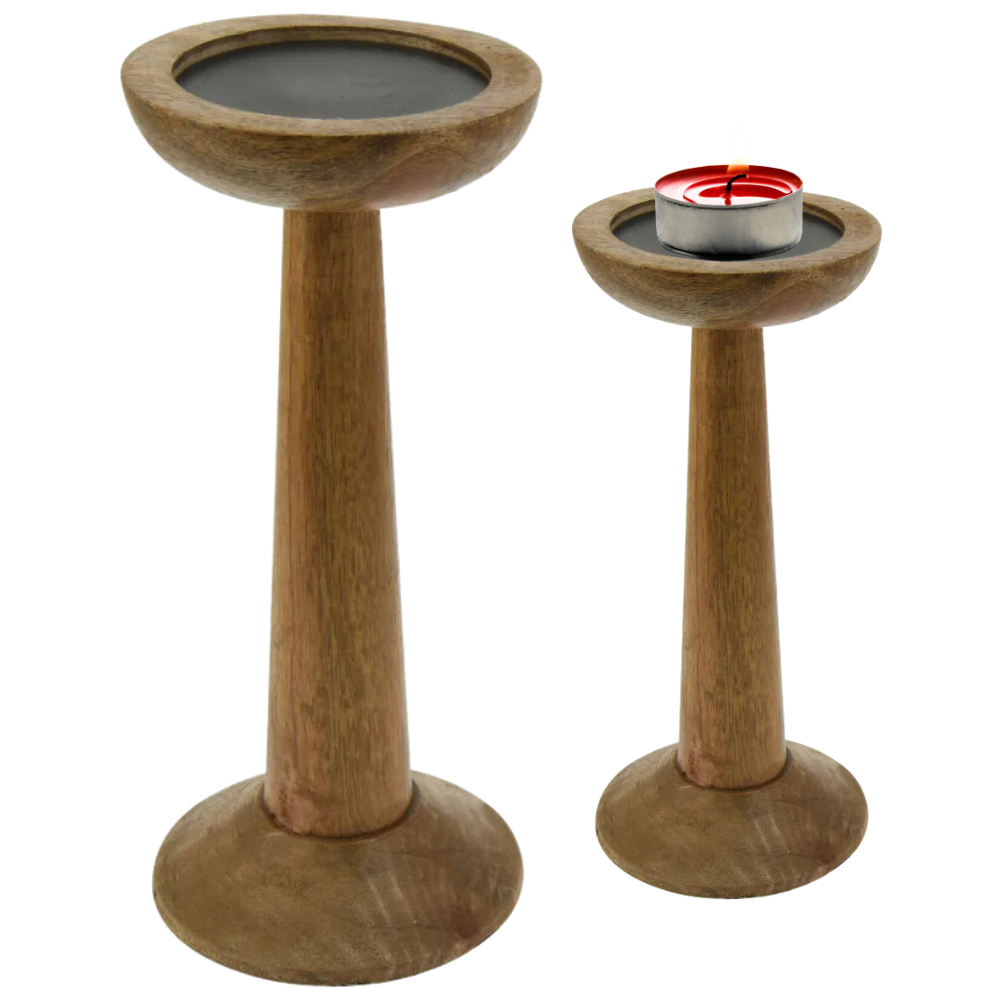 ŚWIECZNIK Z DREWNA MANGO MAŁY 11XH25CM