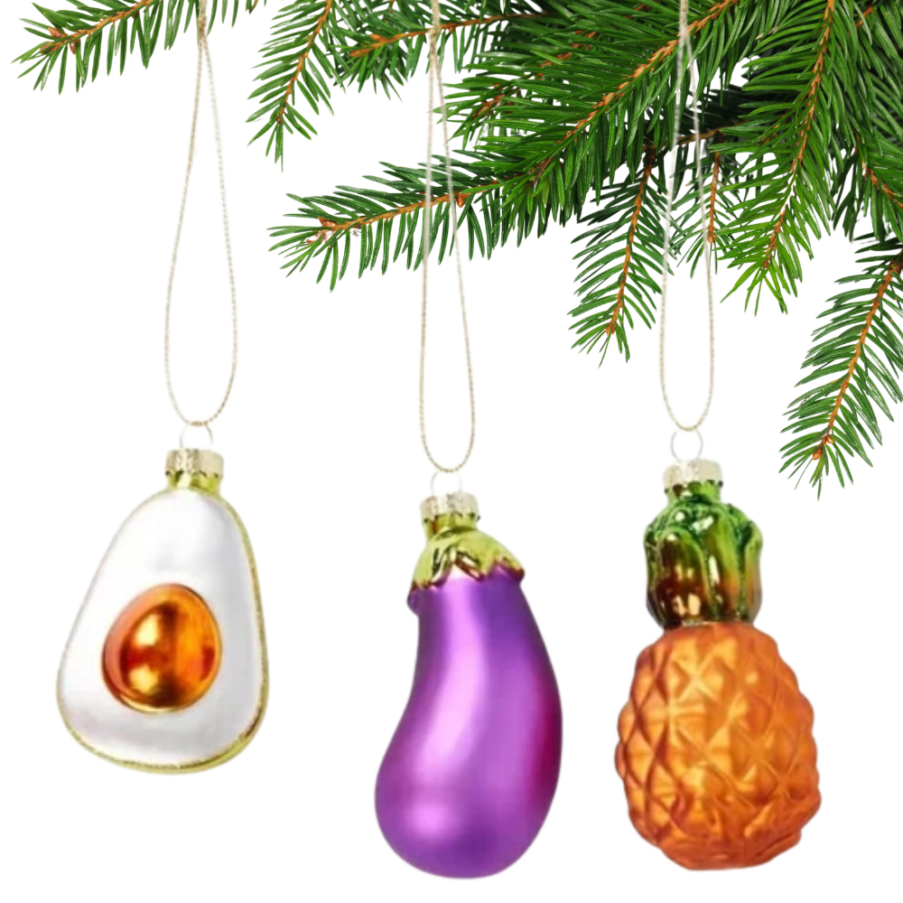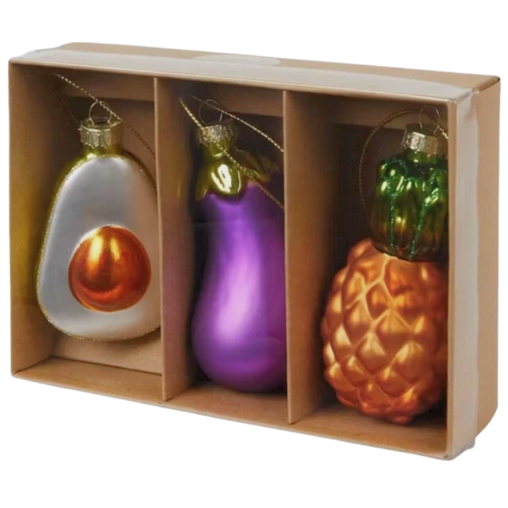 SZKLANE ZAWIESZKI ŚWIĄTECZNE 3SZT. AWOKADO BAKŁAŻAN ANANAS