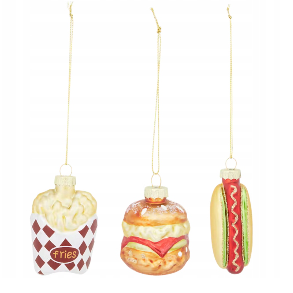 SZKLANE BOMNKI ZAWIESZKI ŚWIĄTECZNE 3SZT FRYTKI HAMBURGER HOT DOG