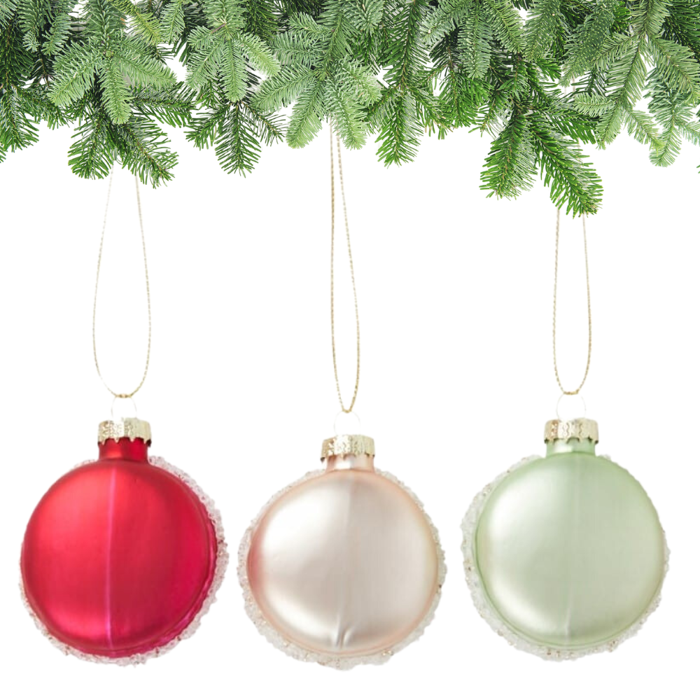 ✔ Bombki świąteczne w kształcie makaroników w trzech kolorach
