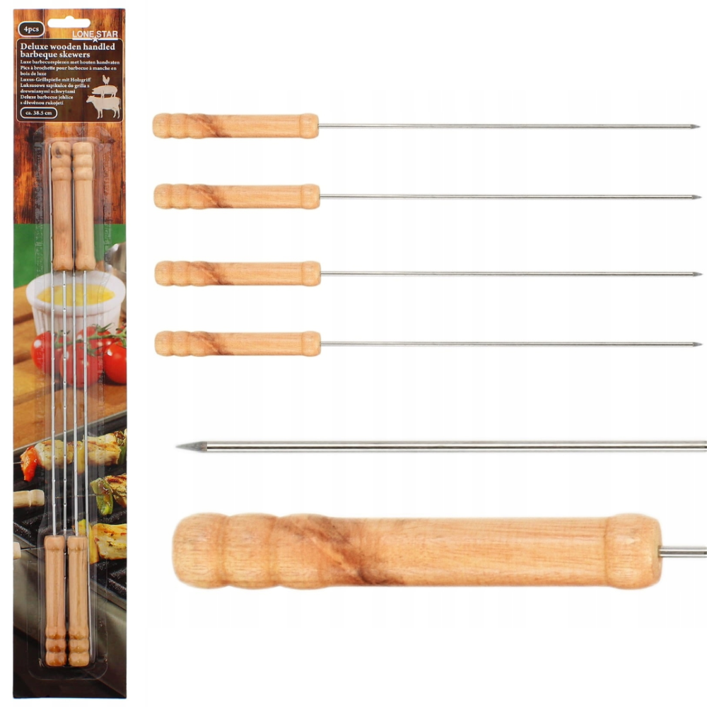 SZPIKULCE DO SZASZŁYKÓW 4 SZT ZESTAW NA GRILLA PREZENT 38,5CM