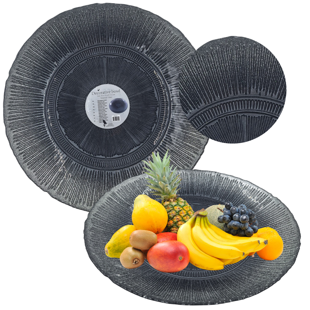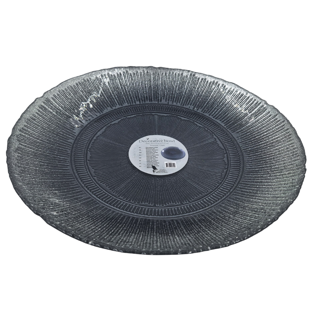 TALERZ DEKORACYJNY 33CM SREBRNY BROKAT DUŻA PATERA OZDOBNA