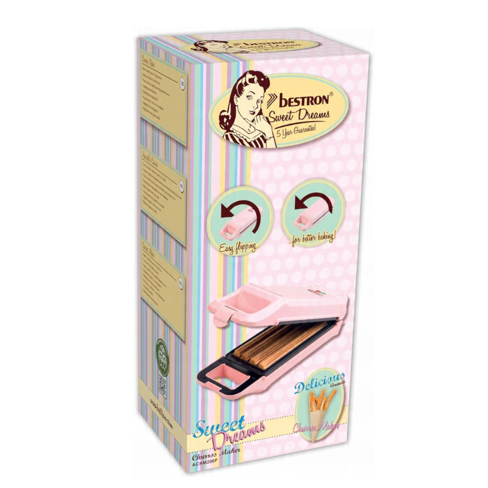 Za sprawą maszynki do pieczenia churros ACHM200M marki Bestron z łatwością przygotujesz własne słodkie przekąski w domu.